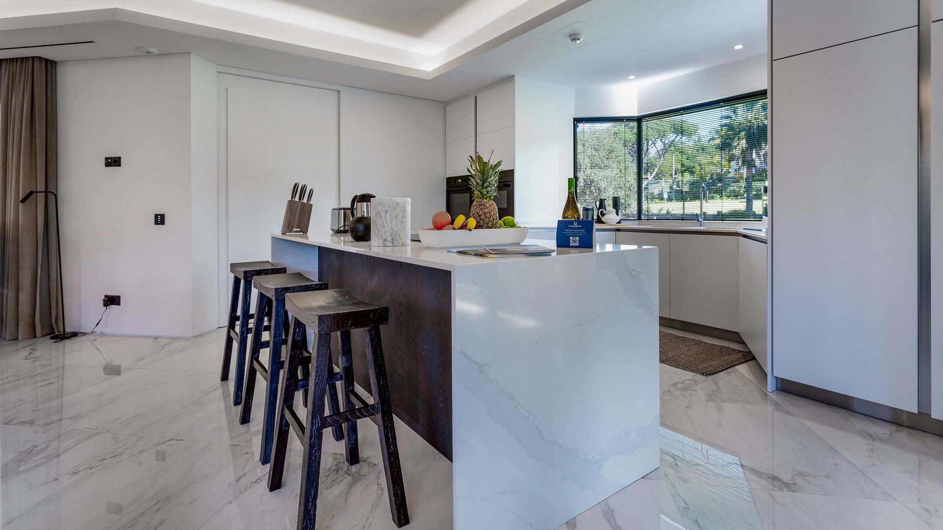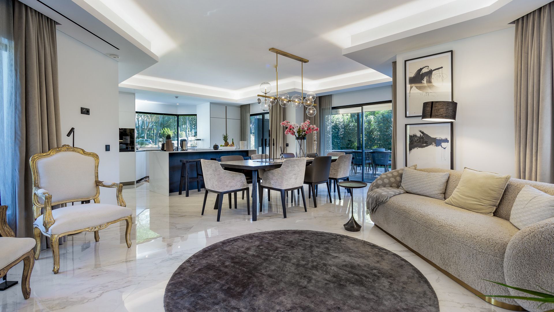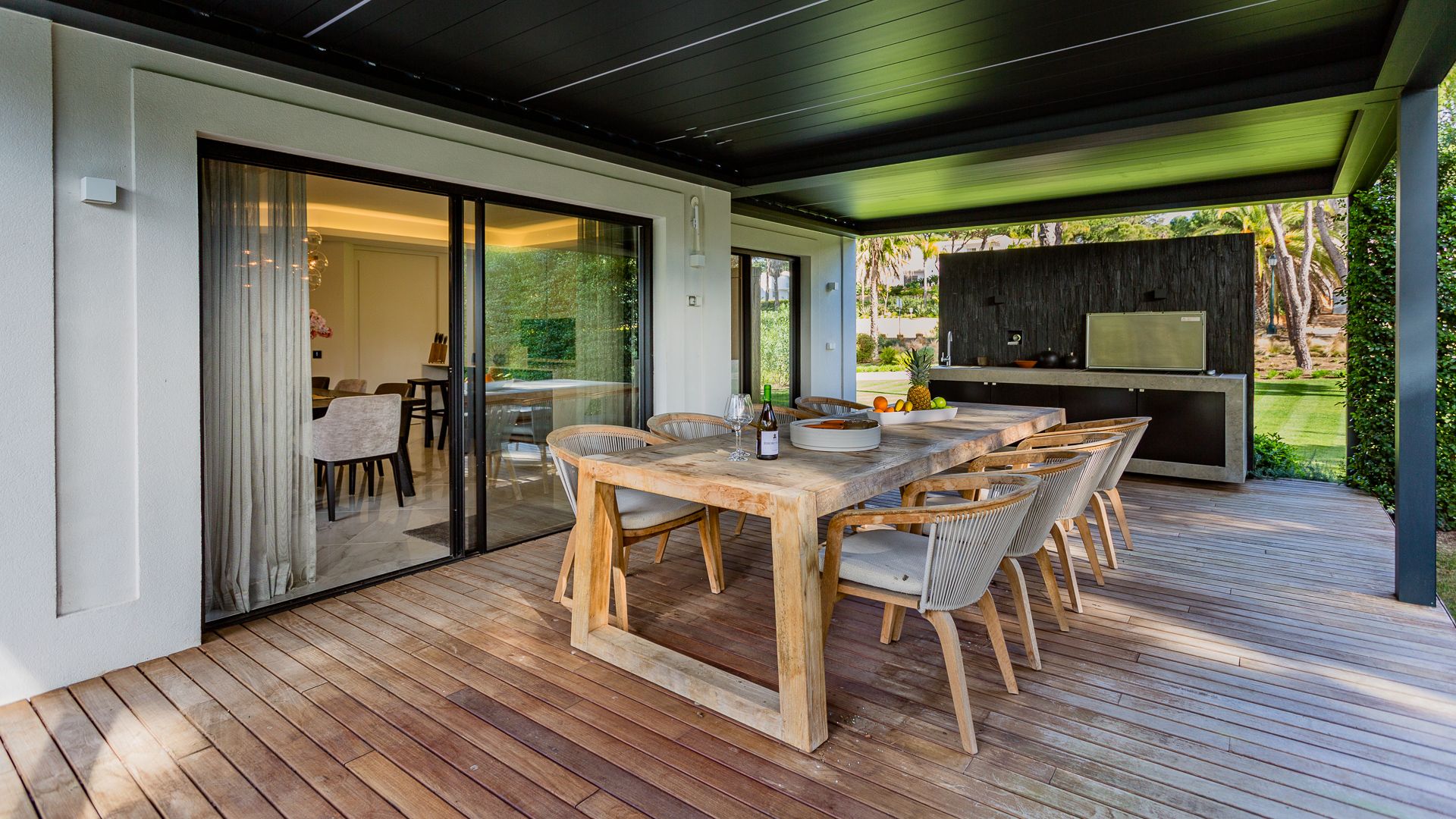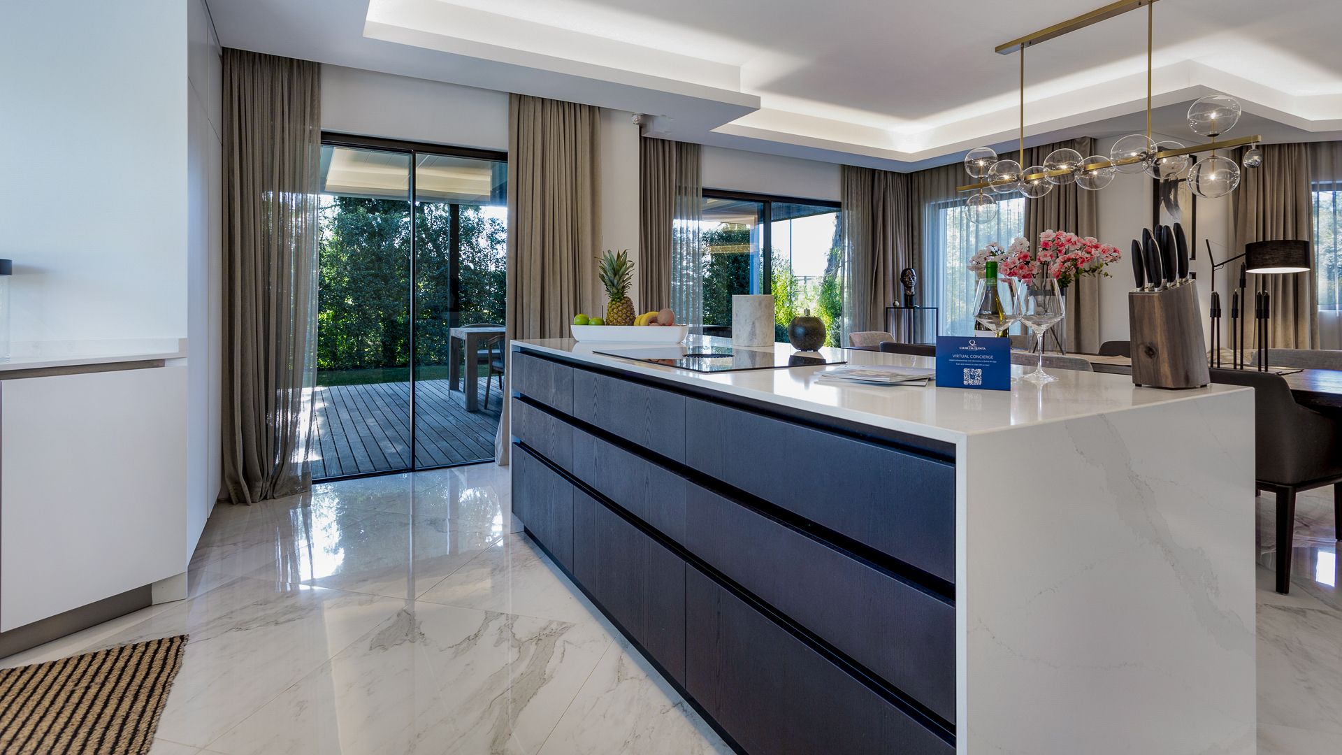 By the entrance there is an ample living area all in an open plan that welcomes the beautiful indirect sun light, with a comfortable lounging area. The extremely well equipped kitchen, opens through to the outdoor living area and the private pool.You will feel immersed by nature.