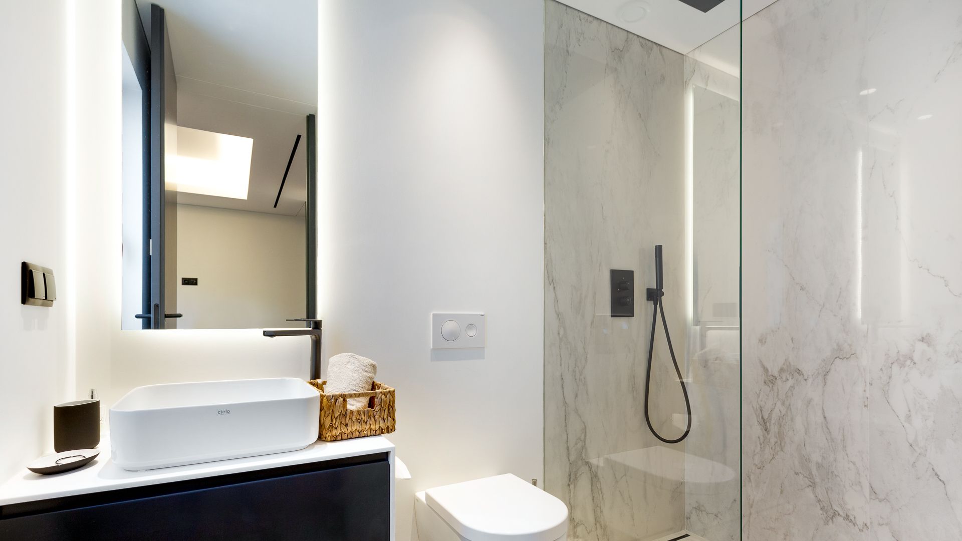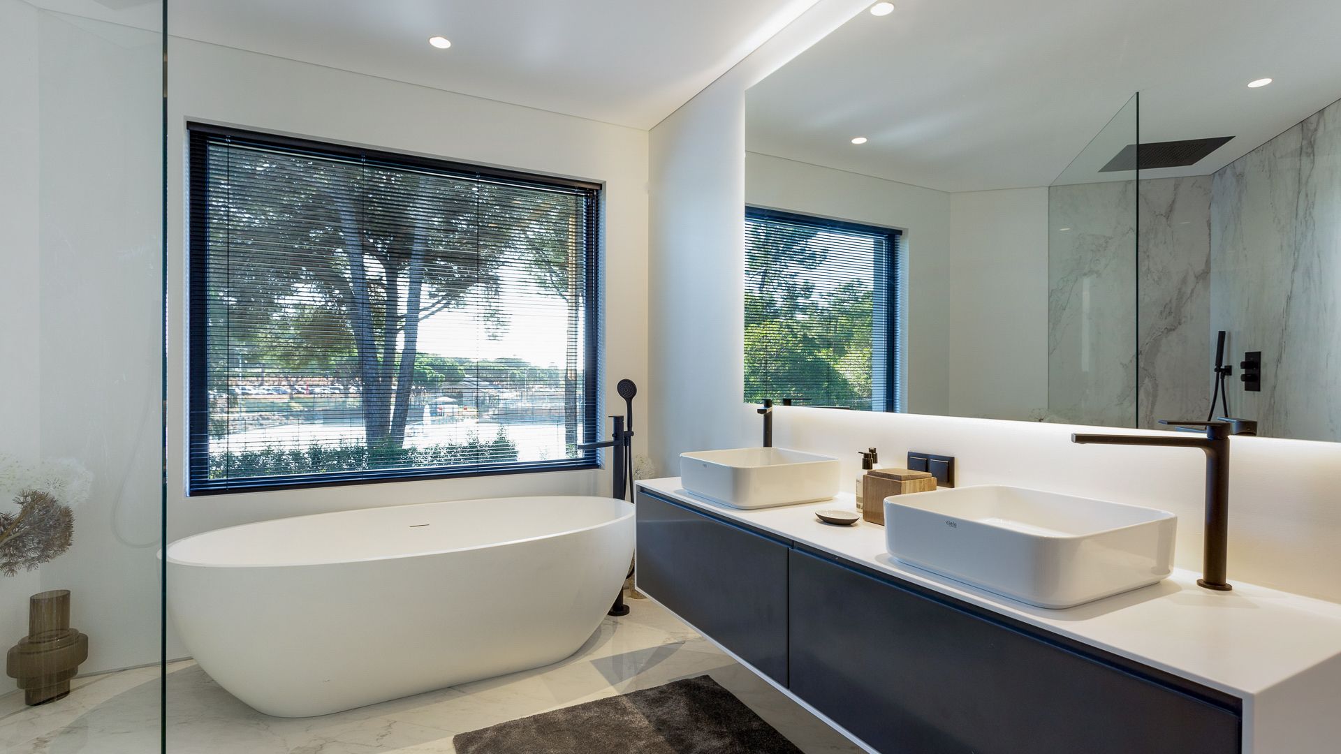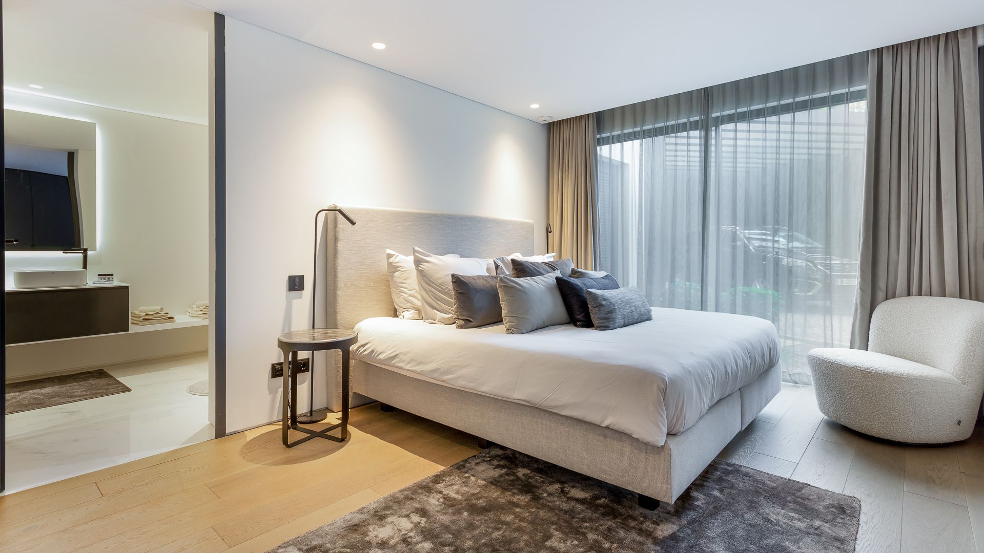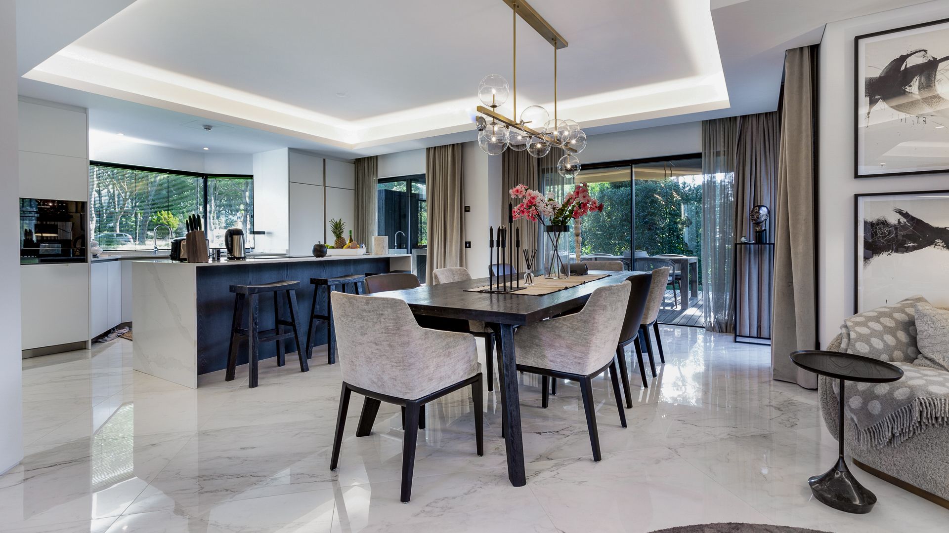 By the entrance there is an ample living area all in an open plan that welcomes the beautiful indirect sun light, with a comfortable lounging area. The extremely well equipped kitchen, opens through to the outdoor living area and the private pool.You will feel immersed by nature.