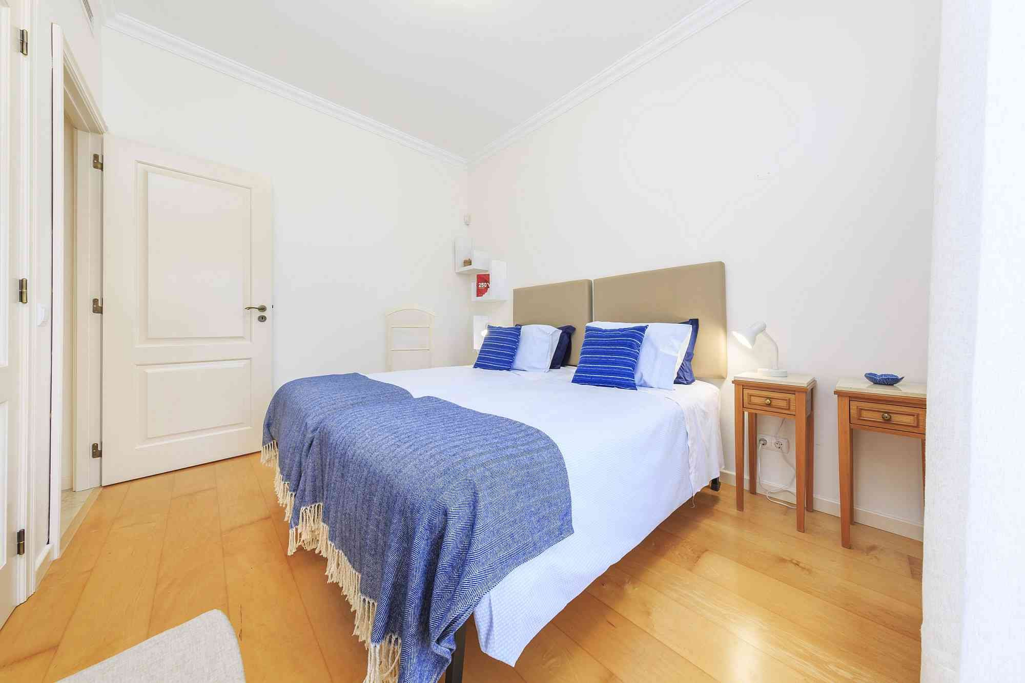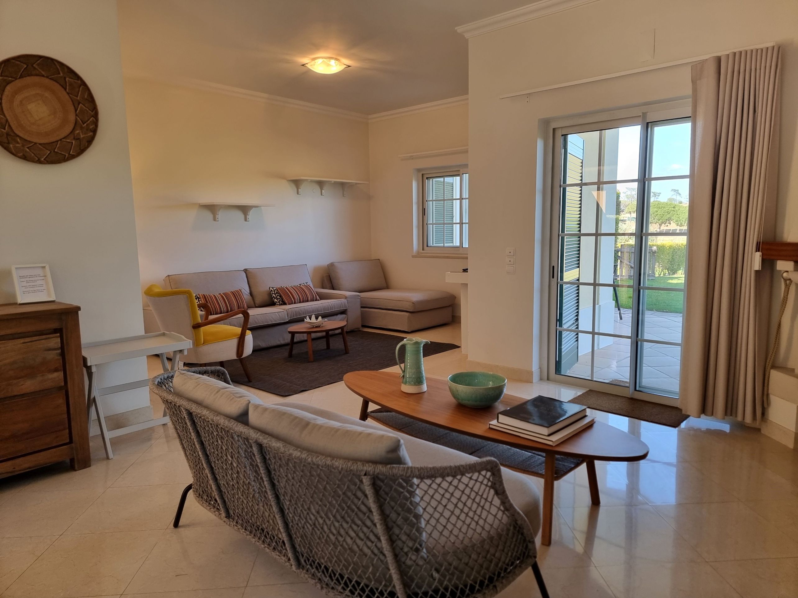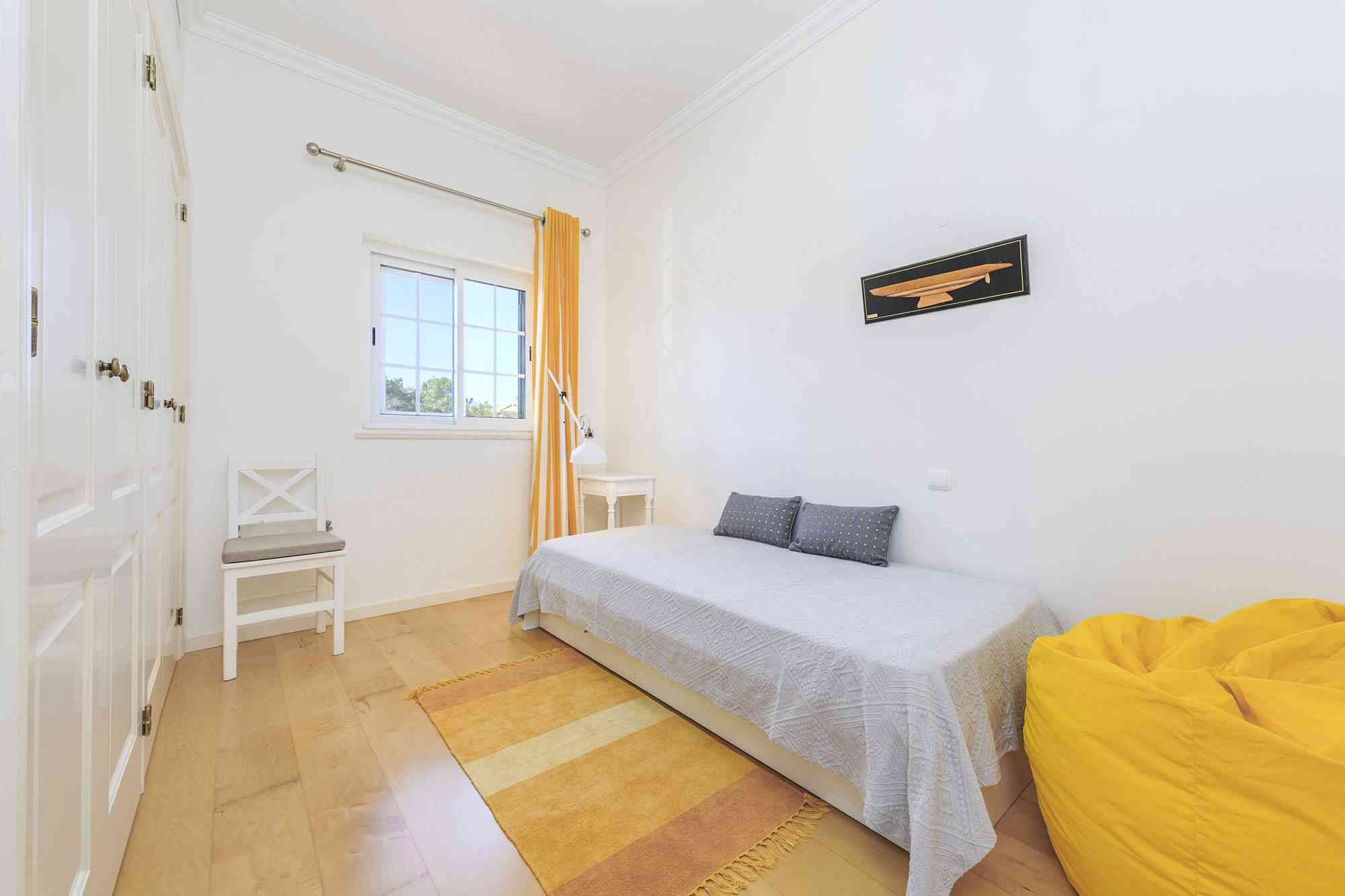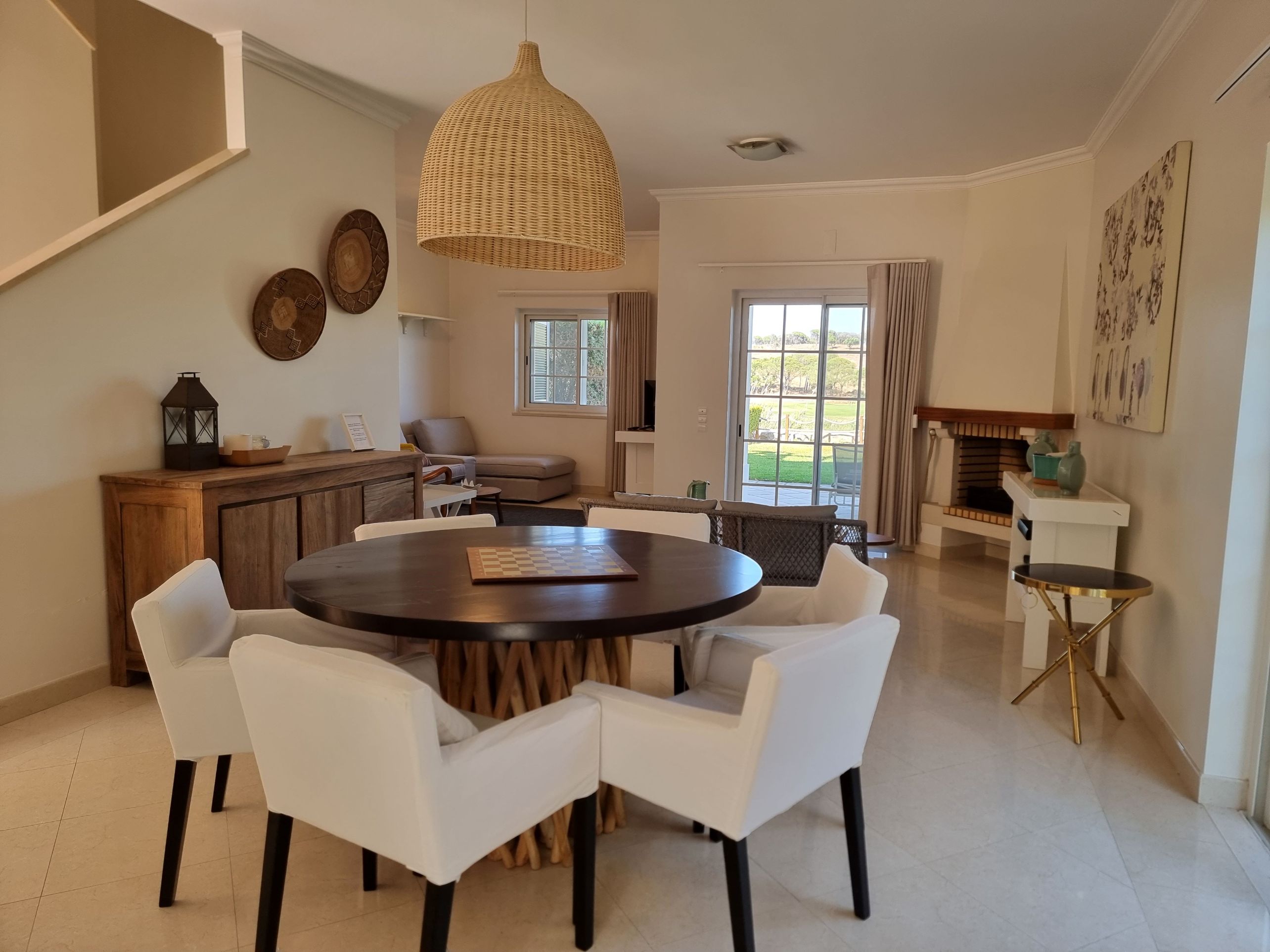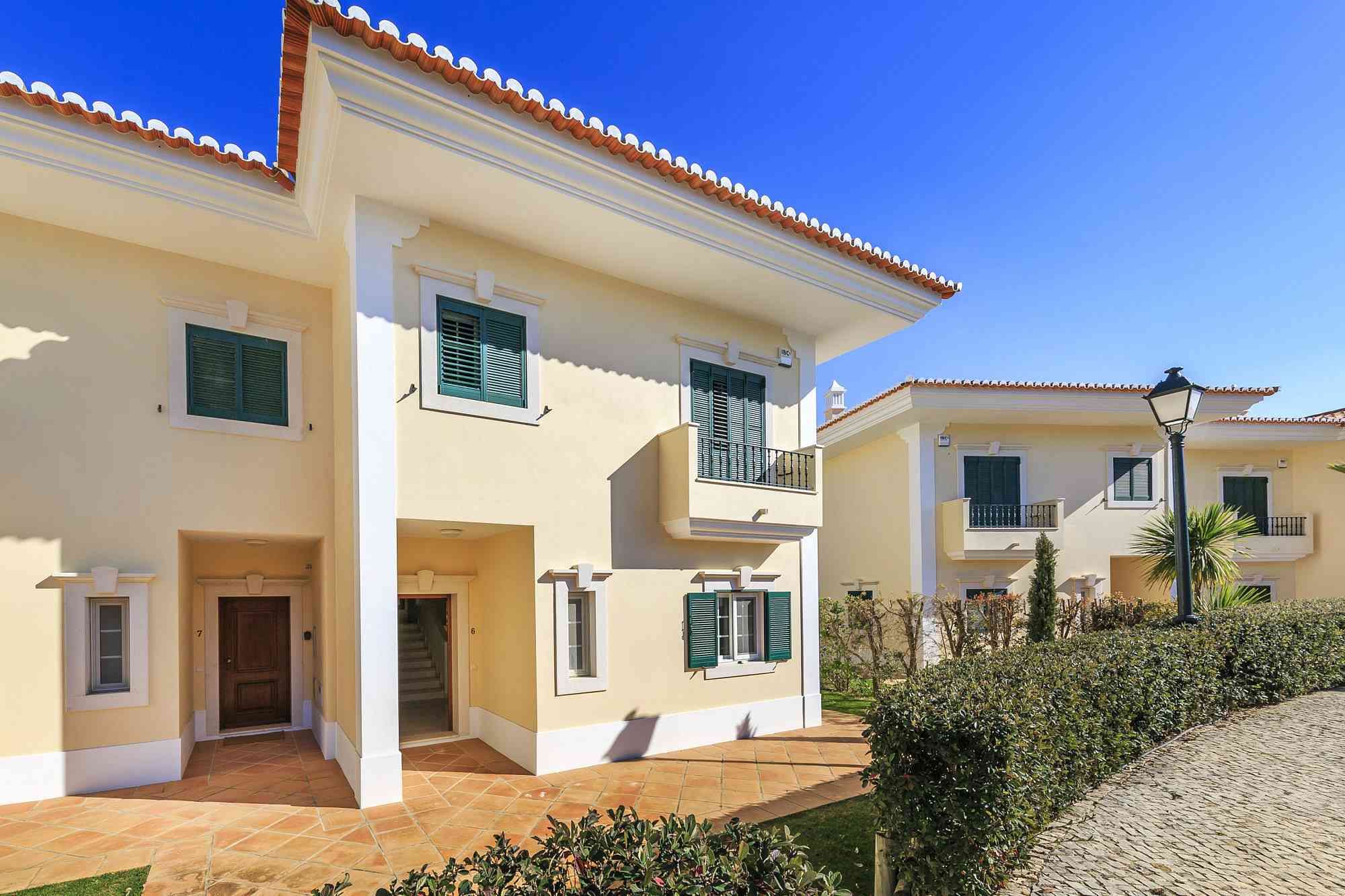 This unique golf-front 3-bedroom property is located next to the Pinheiros Altos Golf Course, with a magnificent view over the fairways and the Ria Formosa Natural Park. On the first floor there is a master suite with access to a private terrace and also a double room and a single room with a folding bed and a shared bathroom. On the ground floor there is a service bathroom with shower, a fully equipped kitchen and an open plan living / dining room with direct access to the private garden and a covered terrace with BBQ where you can enjoy meals outdoors in the warm climate. Just a short walk away, you can enjoy a communal swimming pool with spectacular views over the golf course. During your stay you can take advantage of air conditioning, alarm system, TV and Wi-Fi service and parking outside the property.