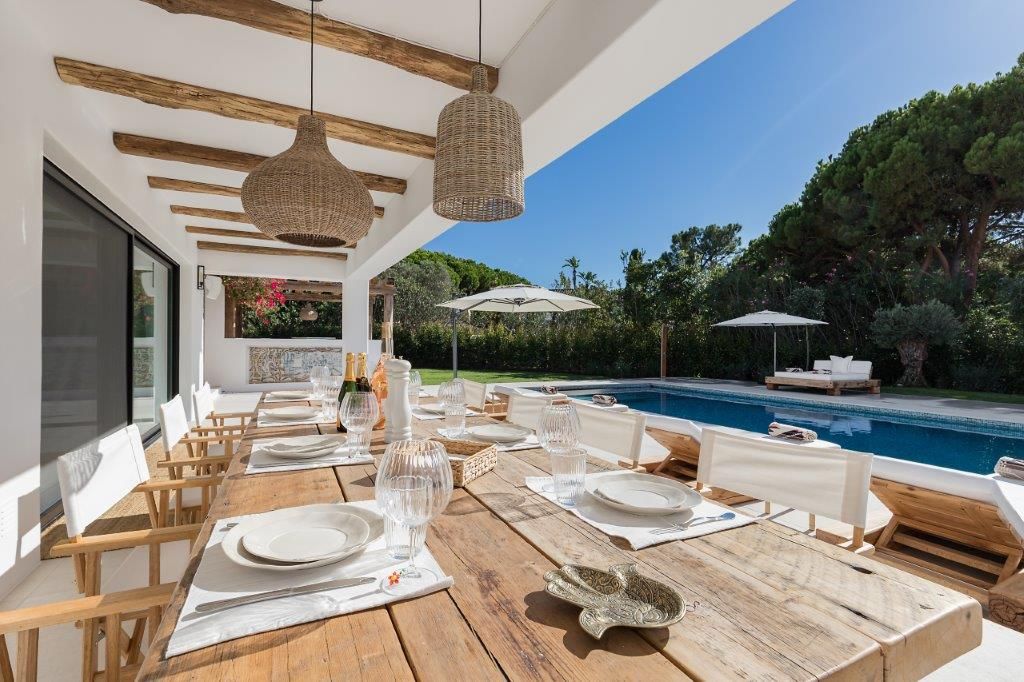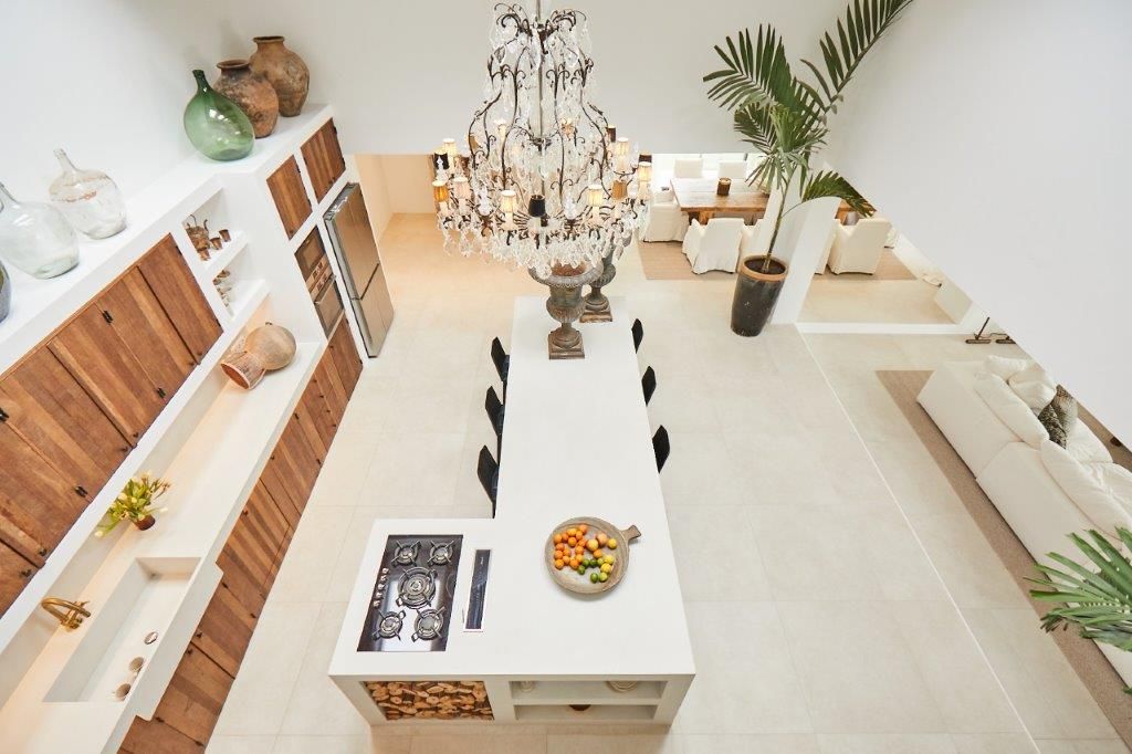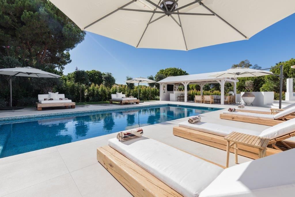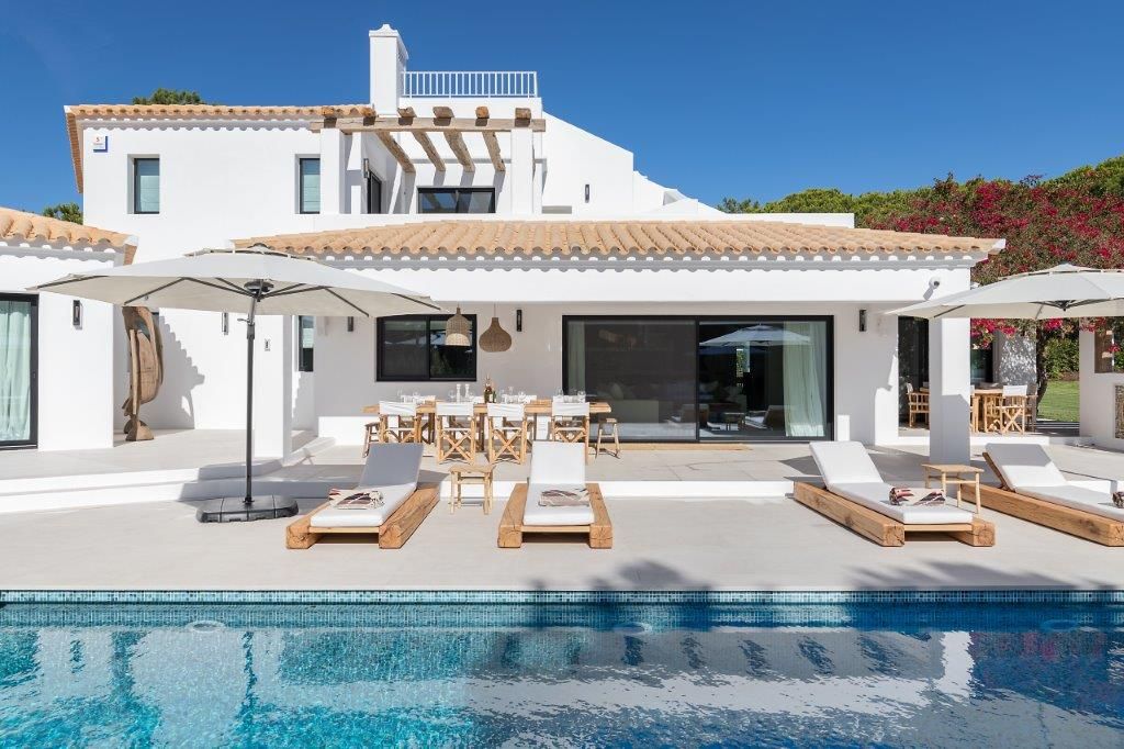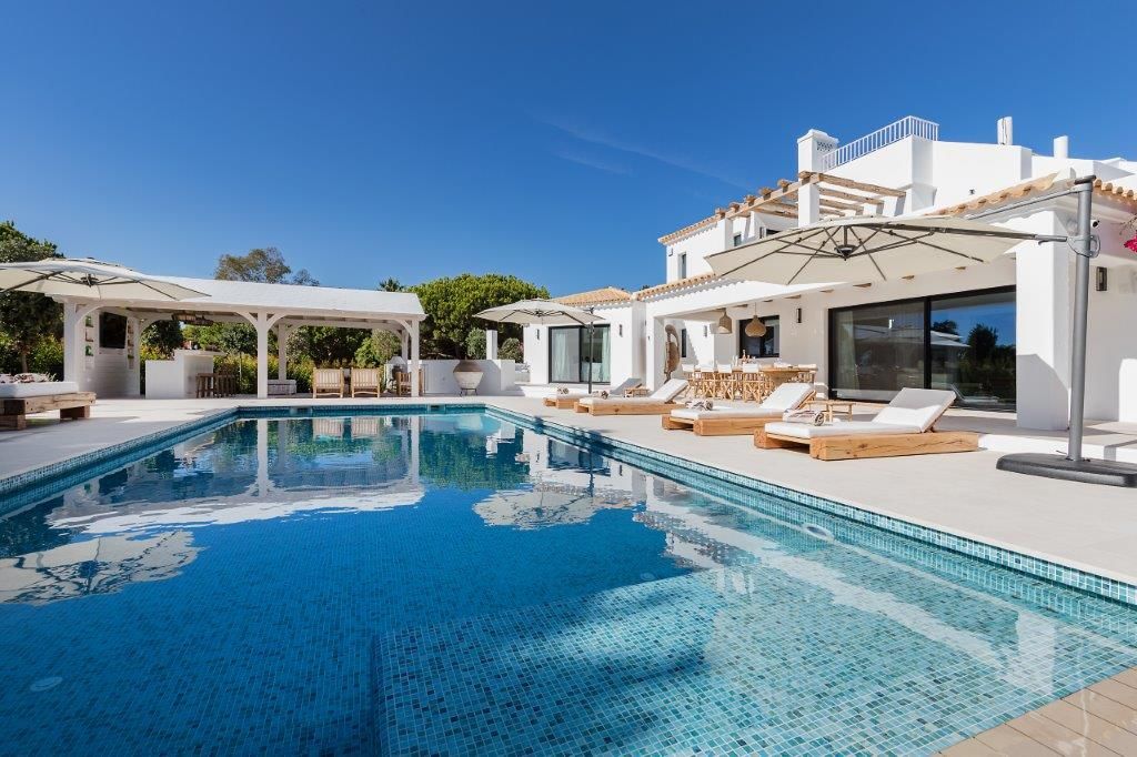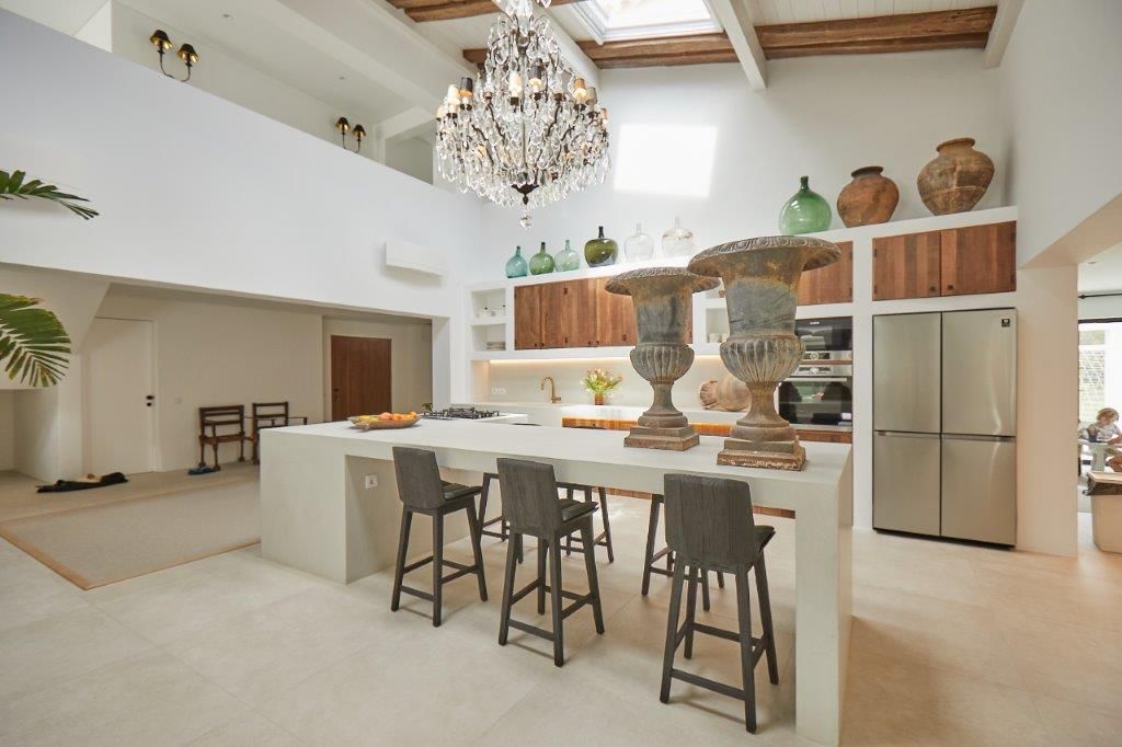Entering this fantastic Villa you will find an grand entrance hall that leads to two comfortable lounge areas as well as to the beautiful and well equipped kitchen. There is an abundance of sun light provided by the fabulous skylights and the floor to ceiling windows that surround the living and dining area open through to outside where you have a living area and salt water pool.