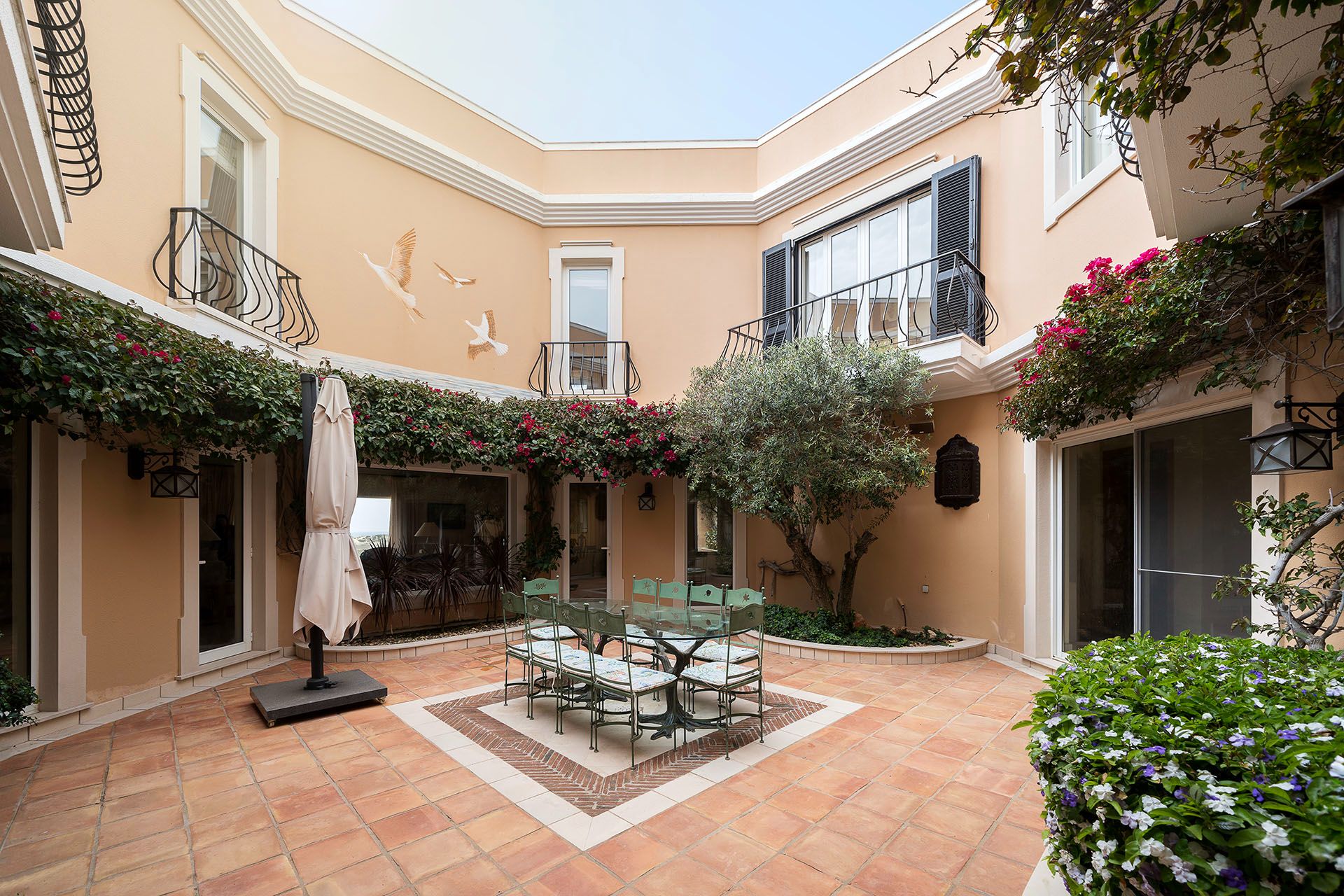 Entertainment is just a door away, with a small gym for your wellness routines and a games room for hours of fun. Gather loved ones in the spacious TV room, bathed in natural light, creating a focal point for relaxation or curling up to watch a classic movie. For your comfort, the property boasts a convenient laundry room, taking care of all practical needs. Each bedroom, meticulously designed, promises a restful haven with terraces and scenic views, ensuring every waking moment is as enchanting as the last.