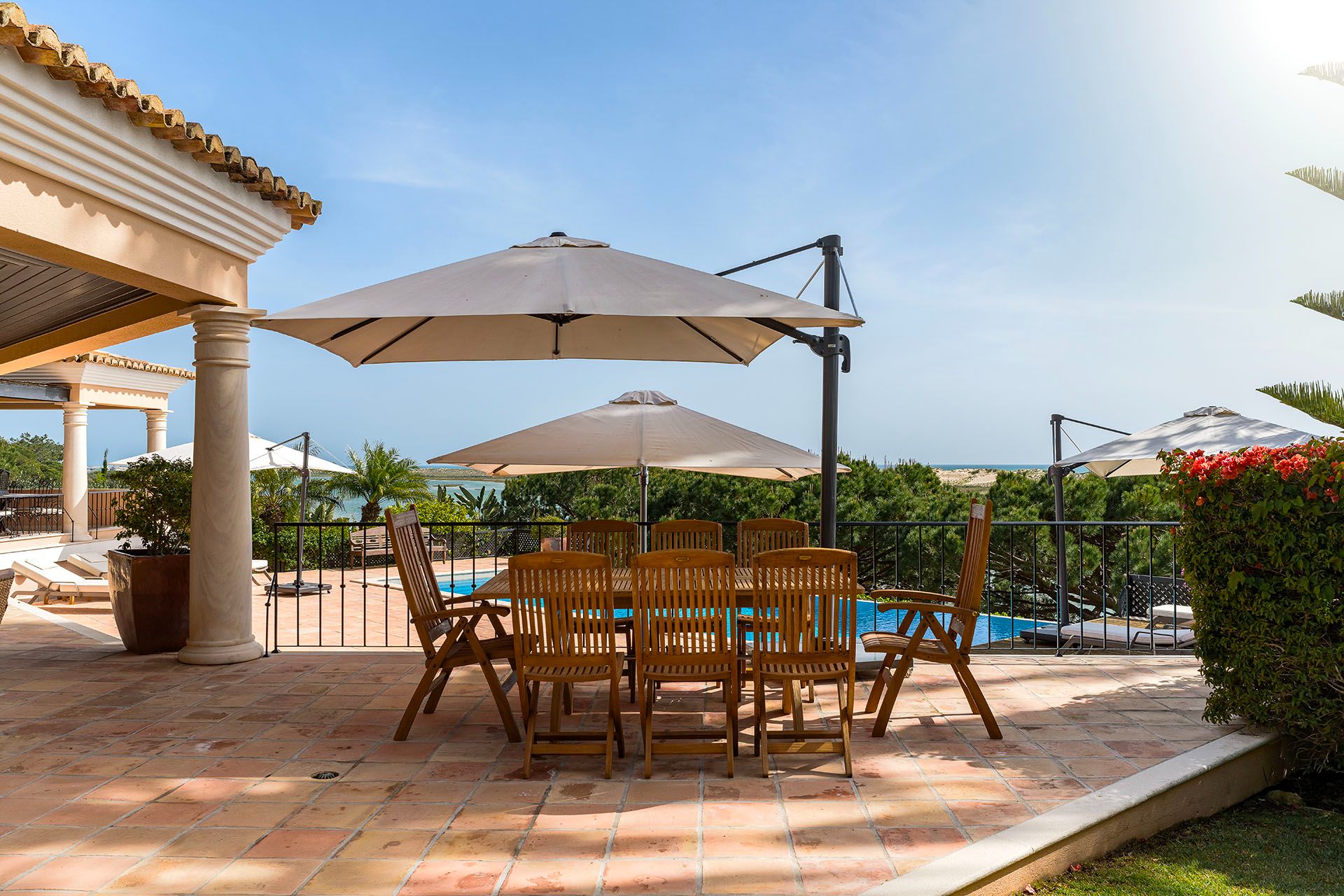 Experience unparalleled luxury at this 5-bedroom villa, boasting a prime frontal beach position with a breathtaking 360 view of the golden beach and golf, framing the splendour by the Ria Formosa and the iconic Quinta bridge.