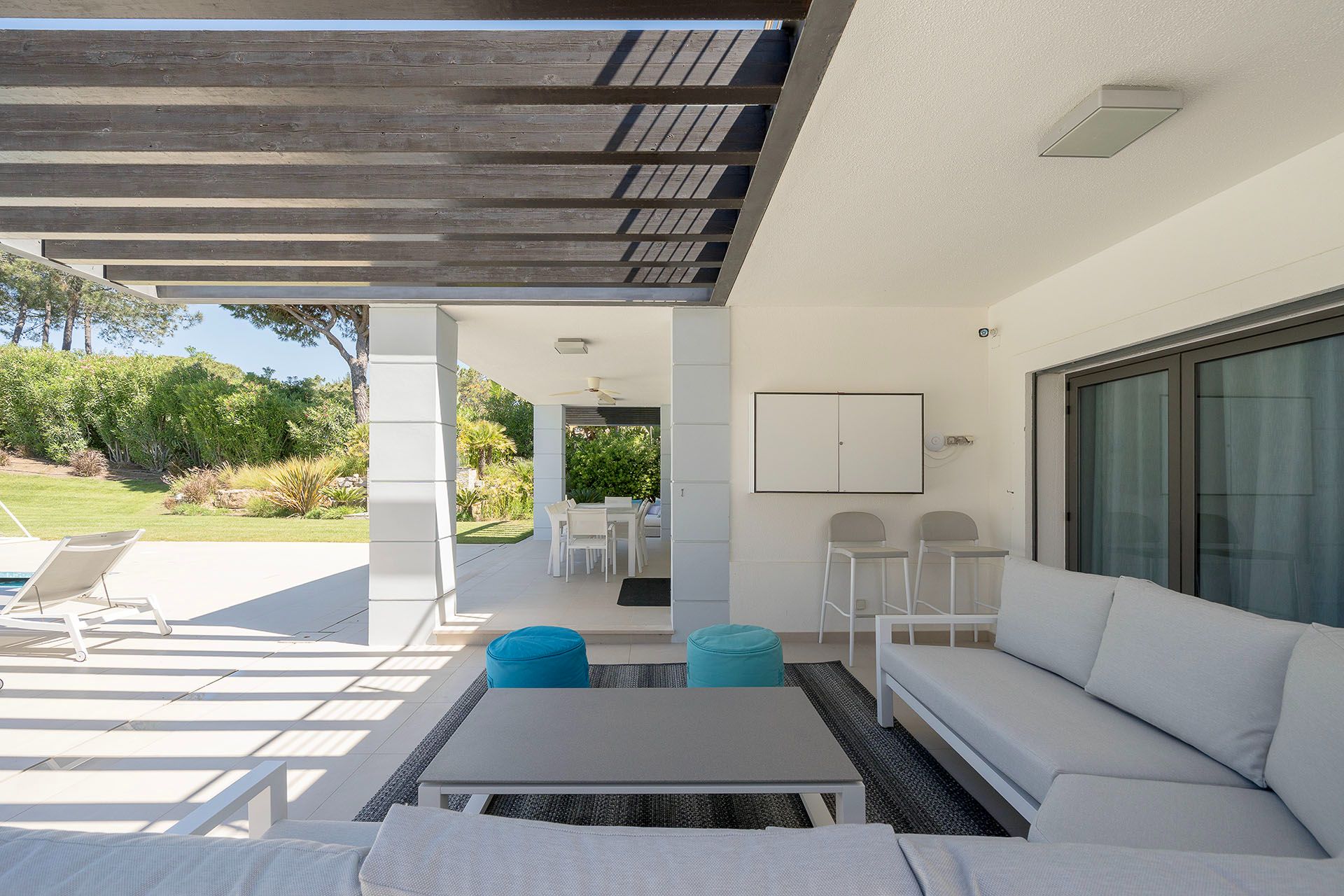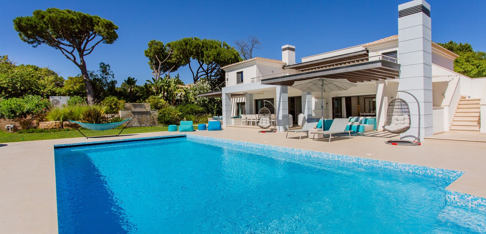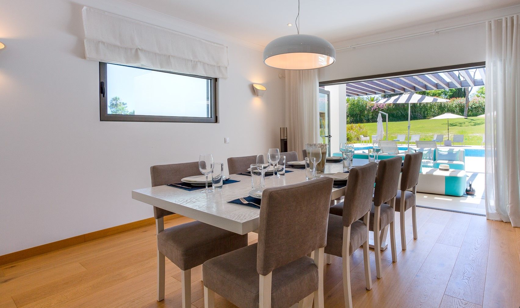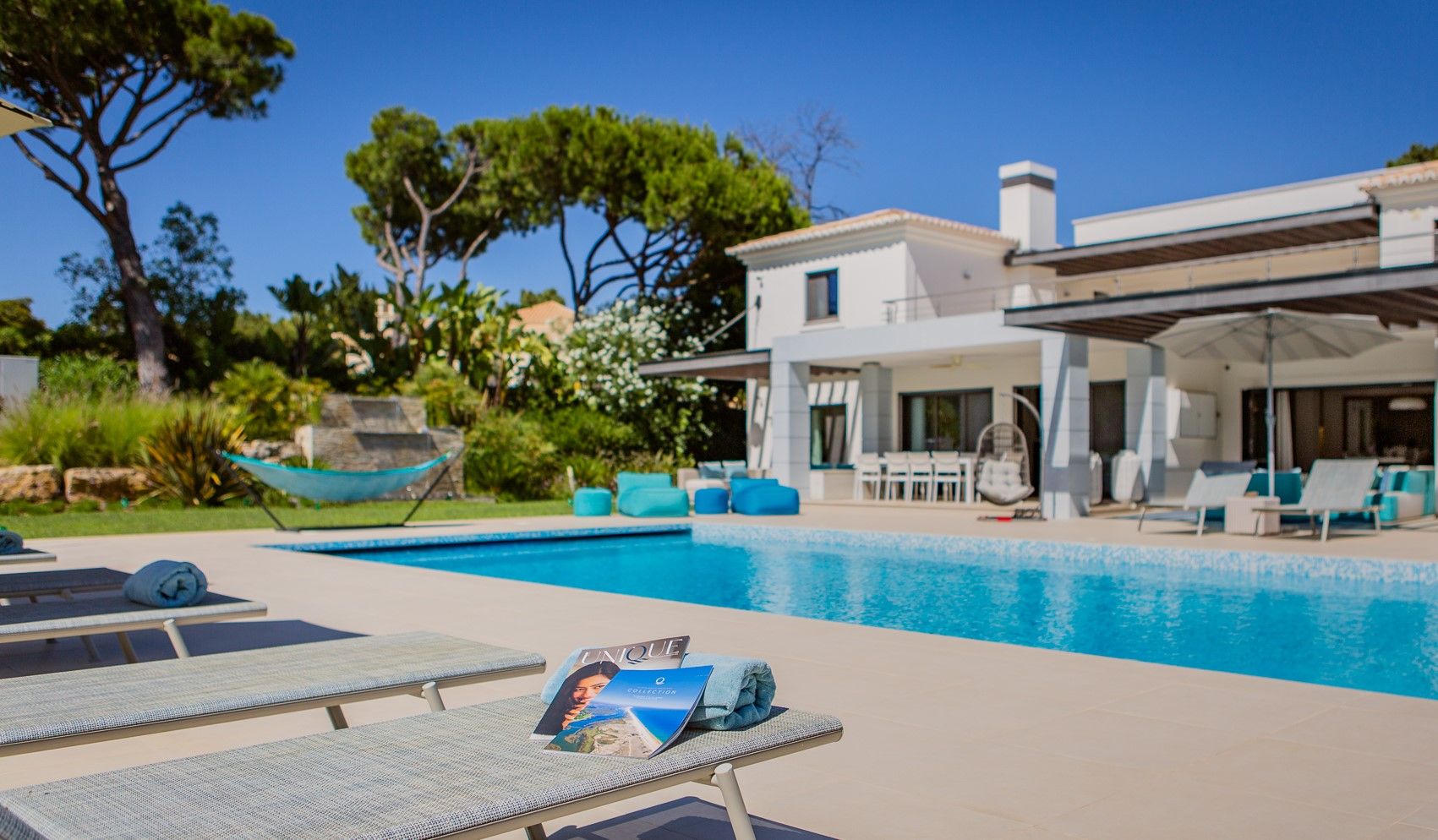 This modern 5 bedroom villa is the perfect family holiday home, located in the serene area of Monte Golf in Quinta do Lago, close to The Campus sports and fitness hub. This property has two double and two twin bedrooms, all en suite, with the upstairs master bedroom benefitting from a beautiful outside terrace. A large living area, with plasma TV, opens through to the private pool and outdoor living area. Enjoy the sunshine outside with BBQ, sun loungers, outdoor dining furniture and tennis court. The property is complete with Air conditioning, Wi-Fi and Cable TV.