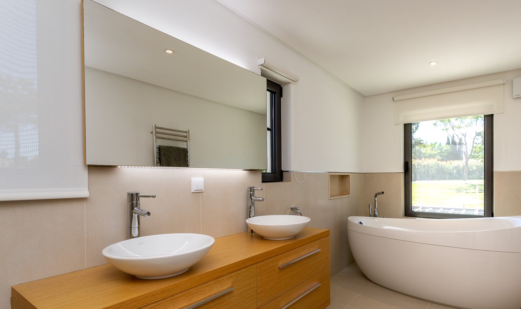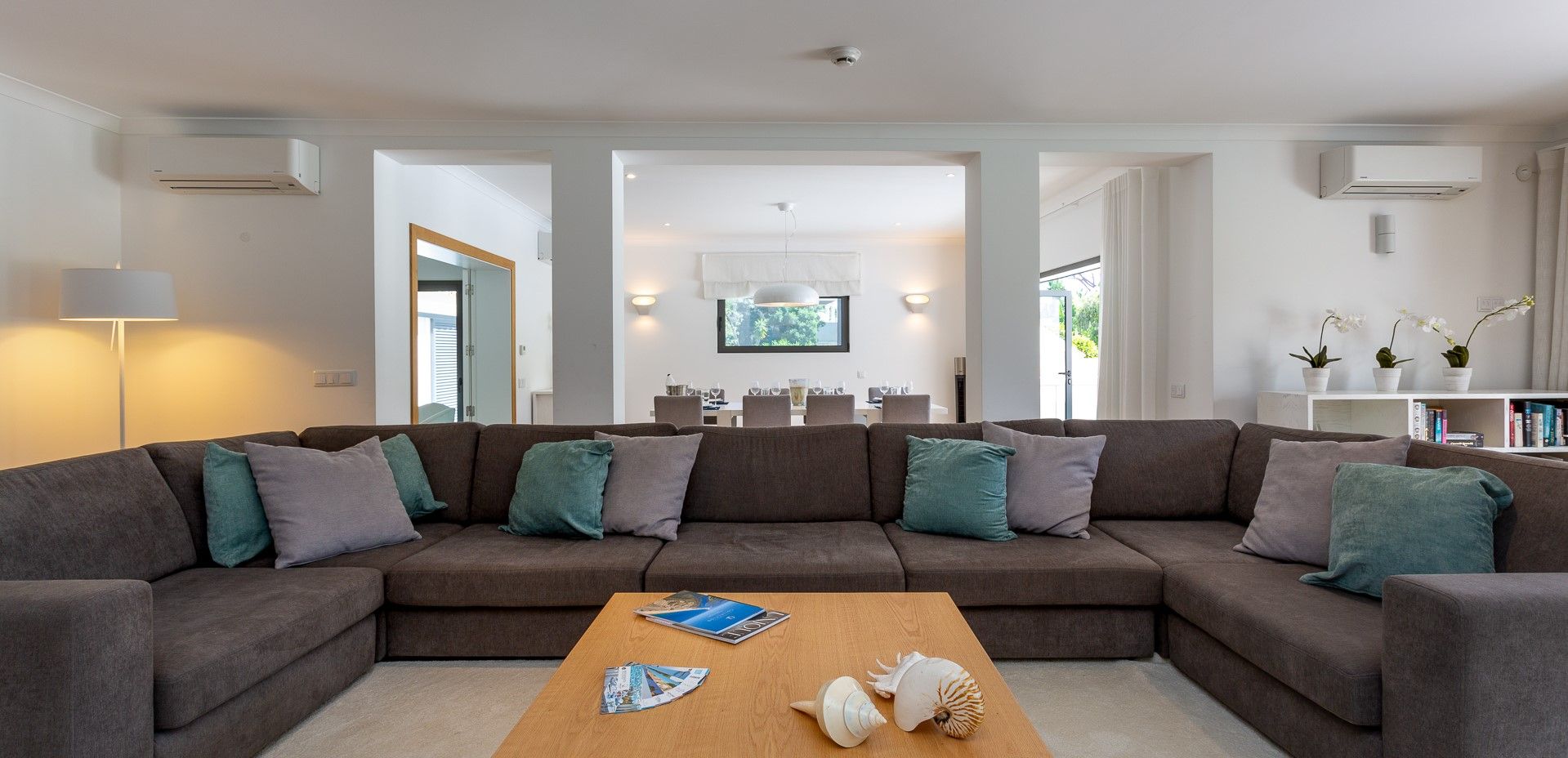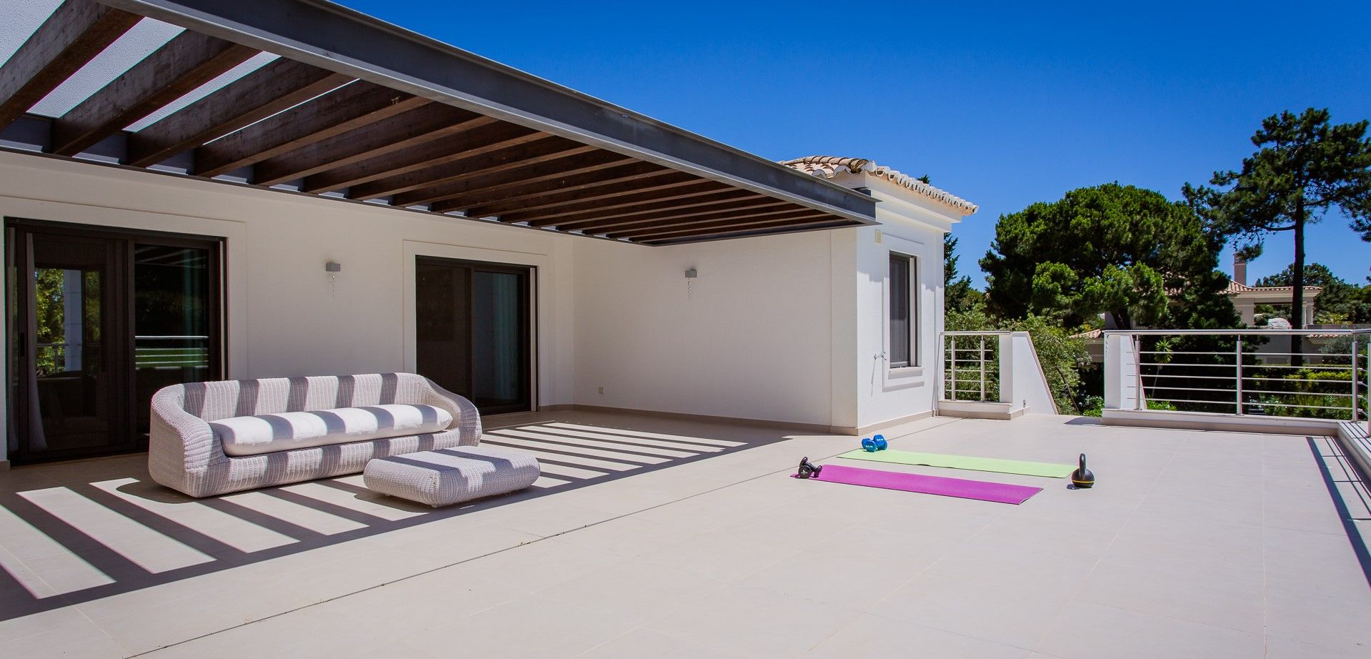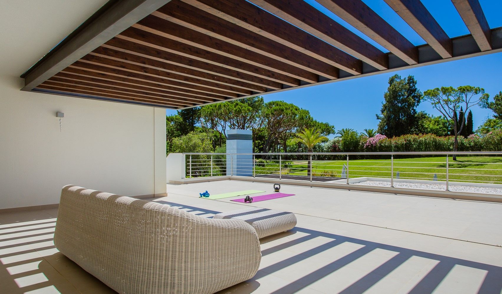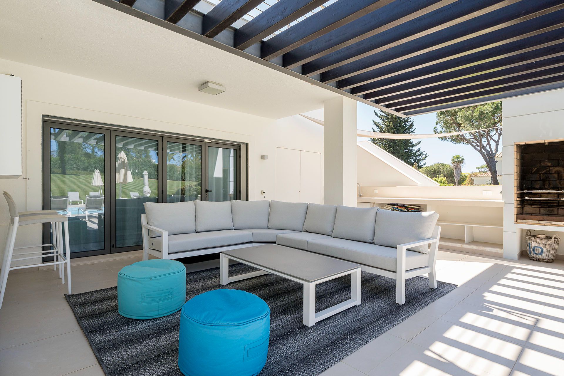 This modern 5 bedroom villa is the perfect family holiday home, located in the serene area of Monte Golf in Quinta do Lago, close to The Campus sports and fitness hub. This property has two double and two twin bedrooms, all en suite, with the upstairs master bedroom benefitting from a beautiful outside terrace. A large living area, with plasma TV, opens through to the private pool and outdoor living area. Enjoy the sunshine outside with BBQ, sun loungers, outdoor dining furniture and tennis court. The property is complete with Air conditioning, Wi-Fi and Cable TV.