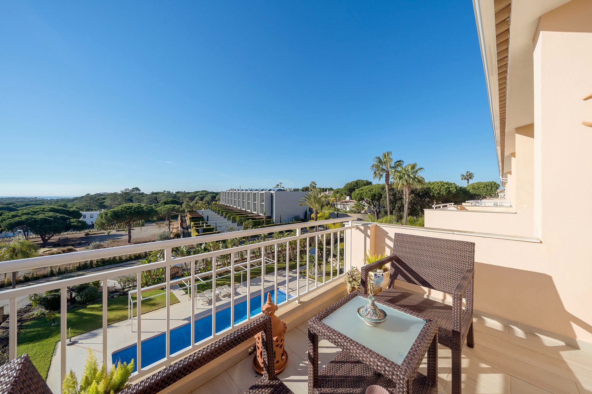 Outdoor balconies provide a pleasant space to enjoy the Algarve climate, while the quiet surroundings of the development ensure a calm and restful atmosphere throughout your stay.