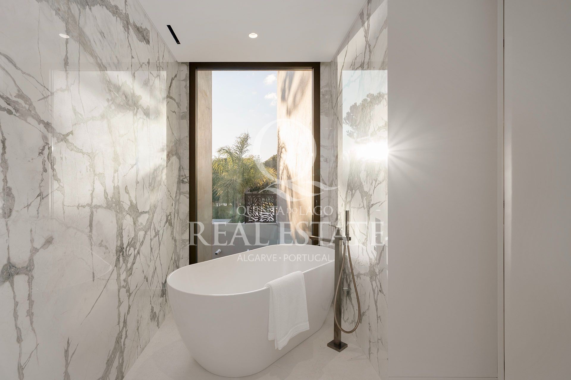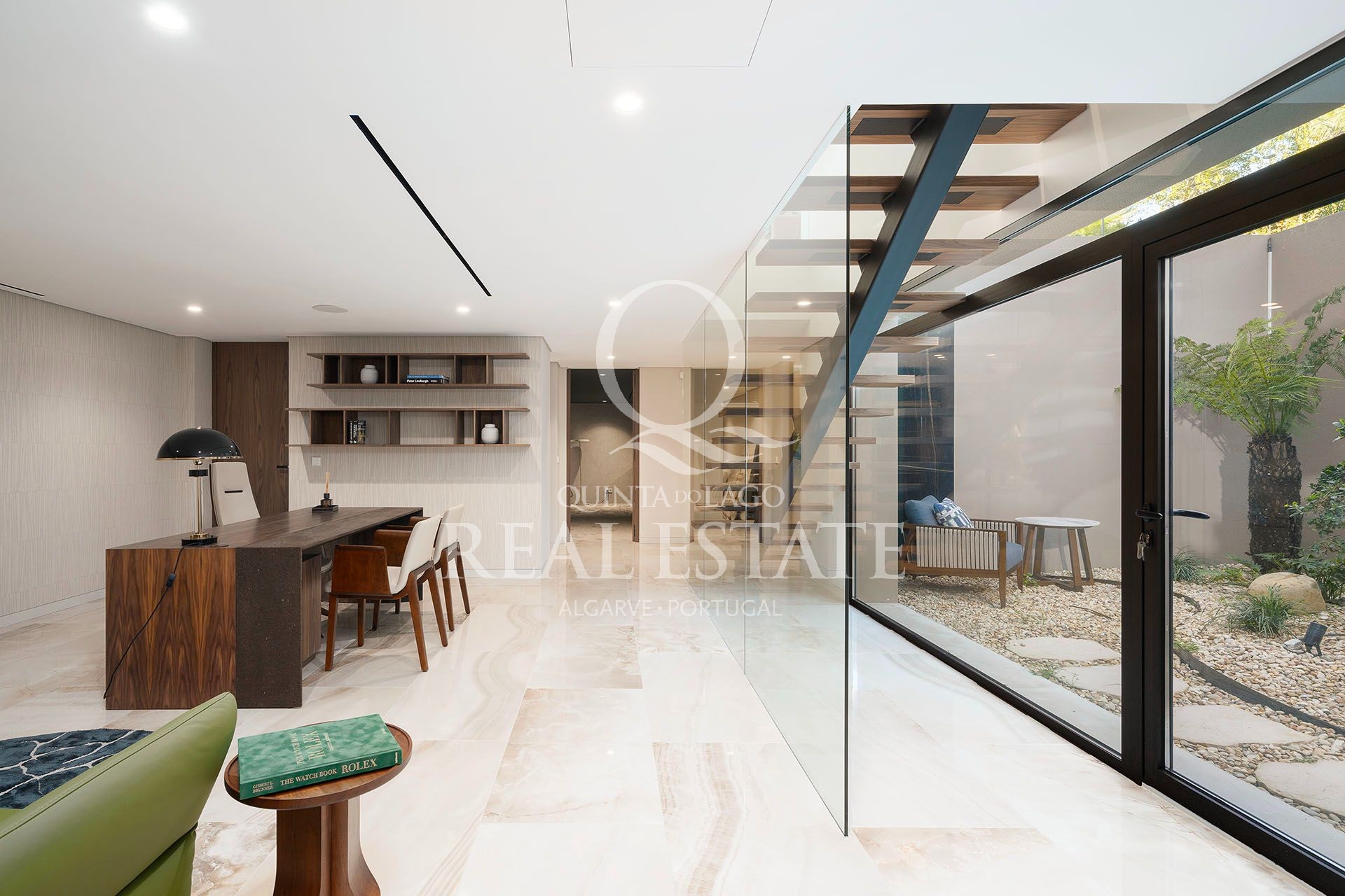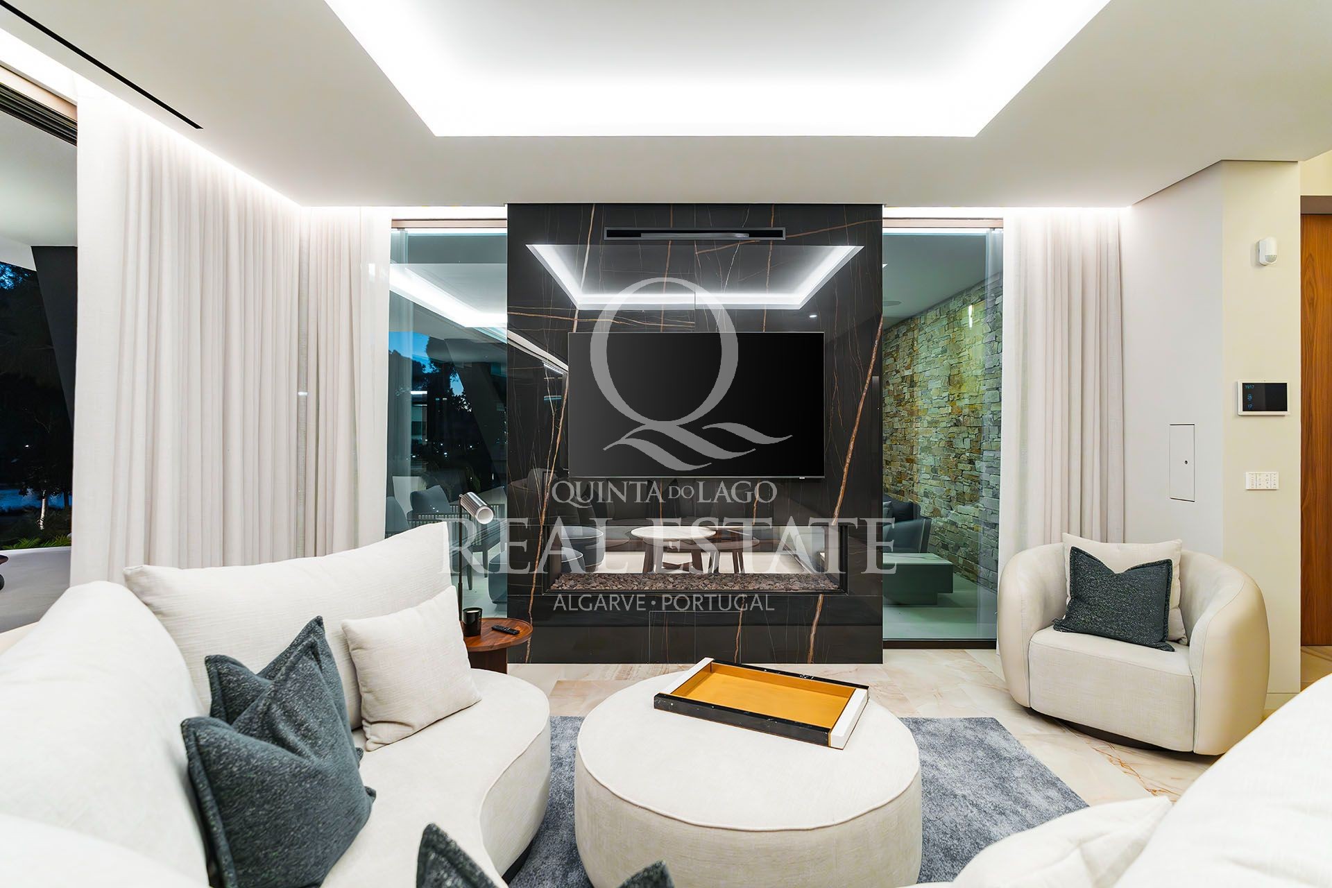 Occupying a peaceful, southwest-facing plot, this fabulous, new state-of-the-art home located in a secluded and luxurious area of Quinta do Lago offers glorious green views and outstanding design. An enchanting contemporary design boasting stylish living, this meticulously crafted property captivates with its modern elegance and attention to the finest details and finishings throughout.