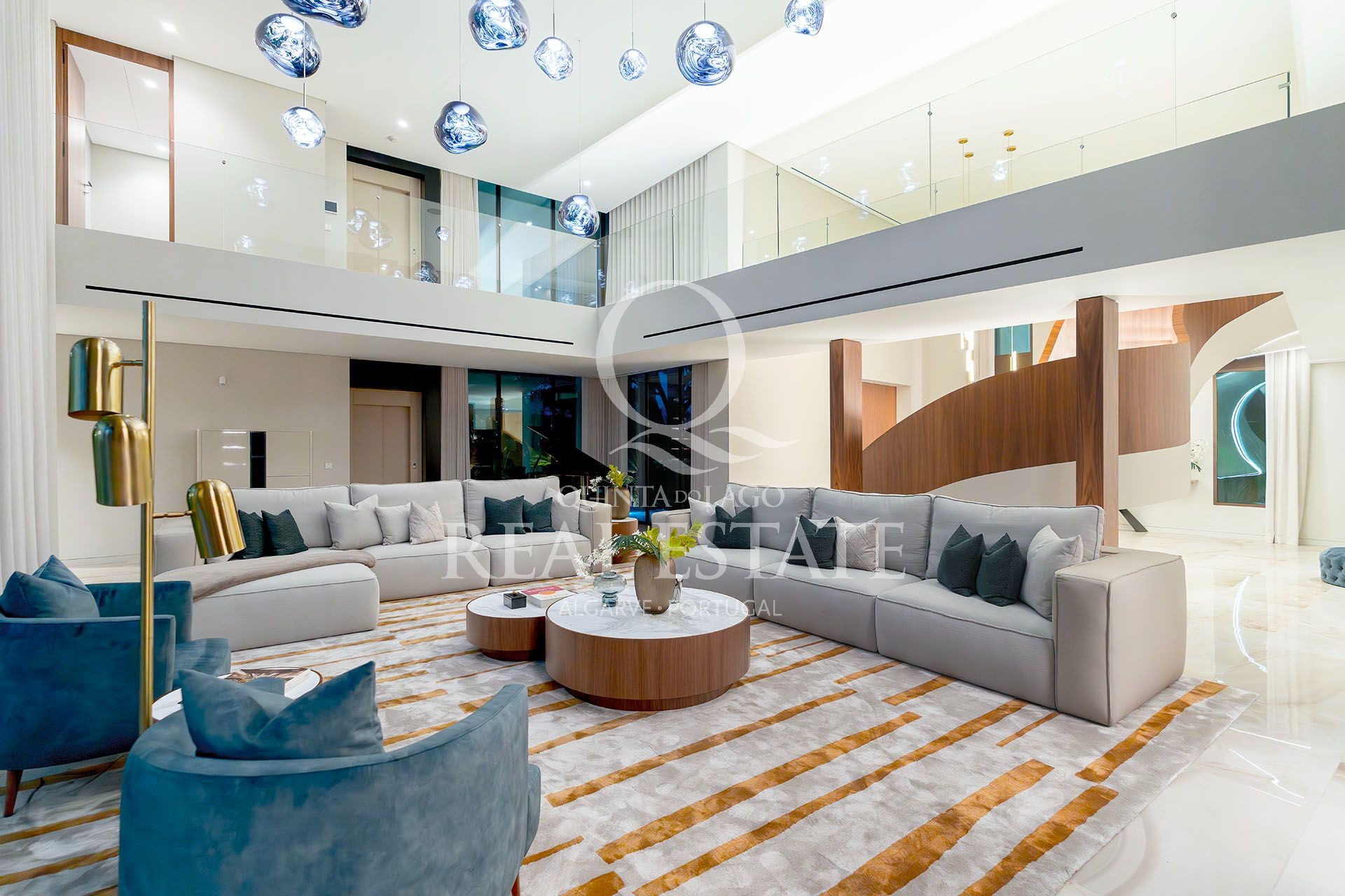 An impressive entrance, captivating views, and a stunning feature staircase welcome you to this magnificent 6-bedroom villa. Perfect for comfortable all-year-round family living, it boasts landscaped gardens, a state-of-the-art swimming pool, and breathtaking lake, golf, and sea views.
