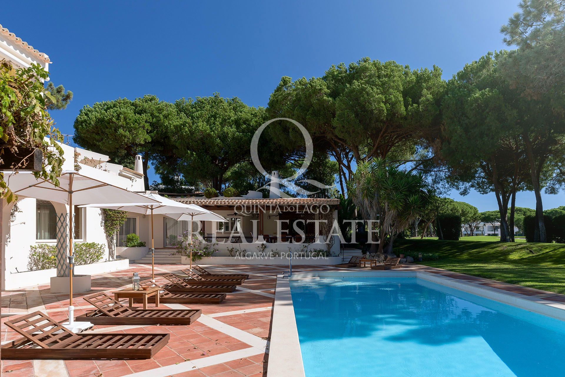 A rare and distinguished opportunity in Quinta do Lago, this 4,231 m² plot currently hosts a classical villa and benefits from a fully approved project for a landmark contemporary villa.