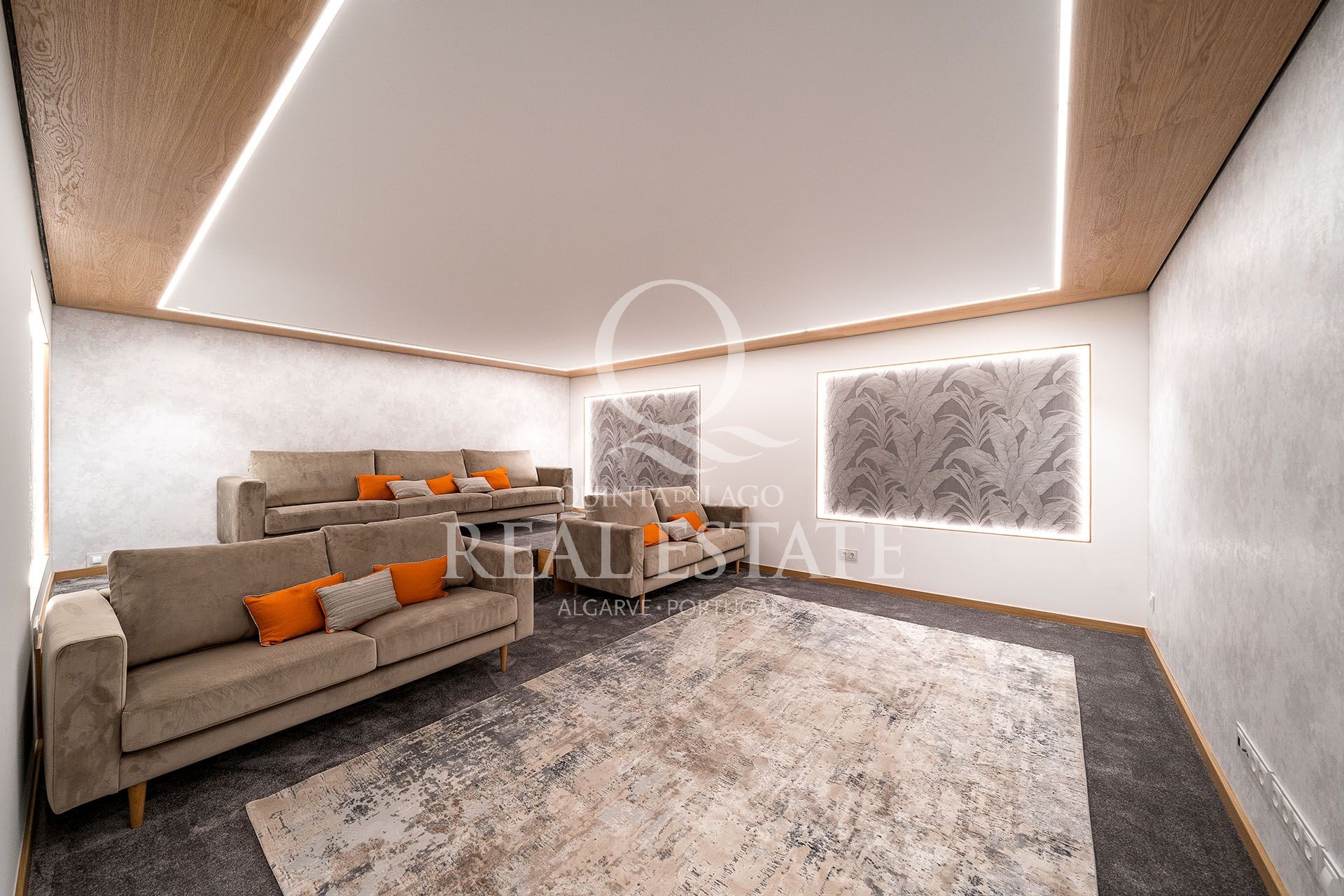 In the basement all year-round entertainment and wellness can be enjoyed with a cinema room with tired seating, a fully kitted home spa with sauna and steam, a gym, complete barbecue bar and terrace as well as a games area.