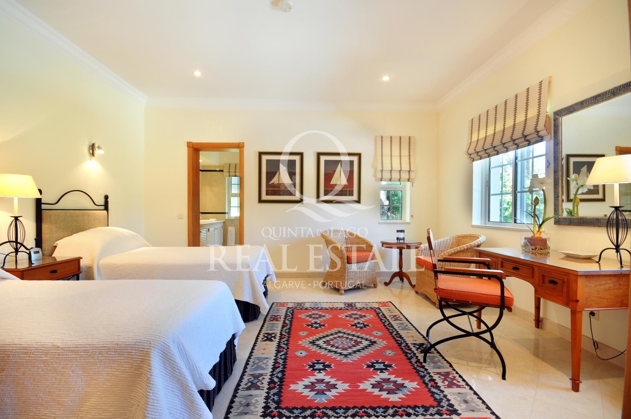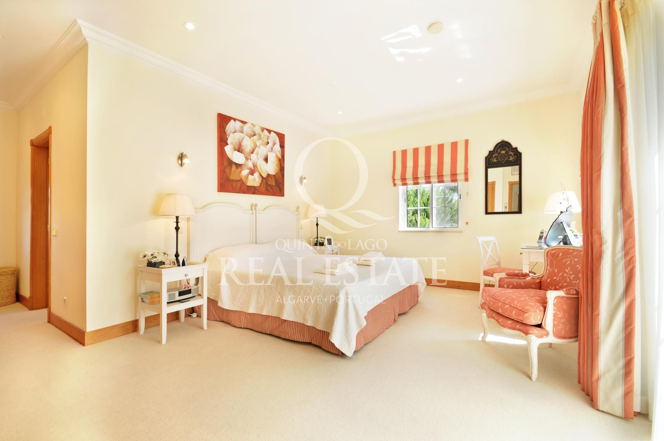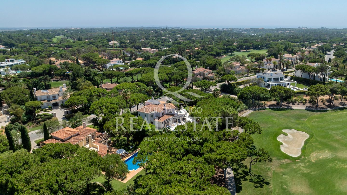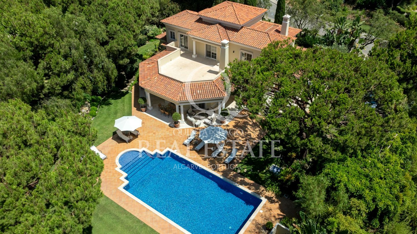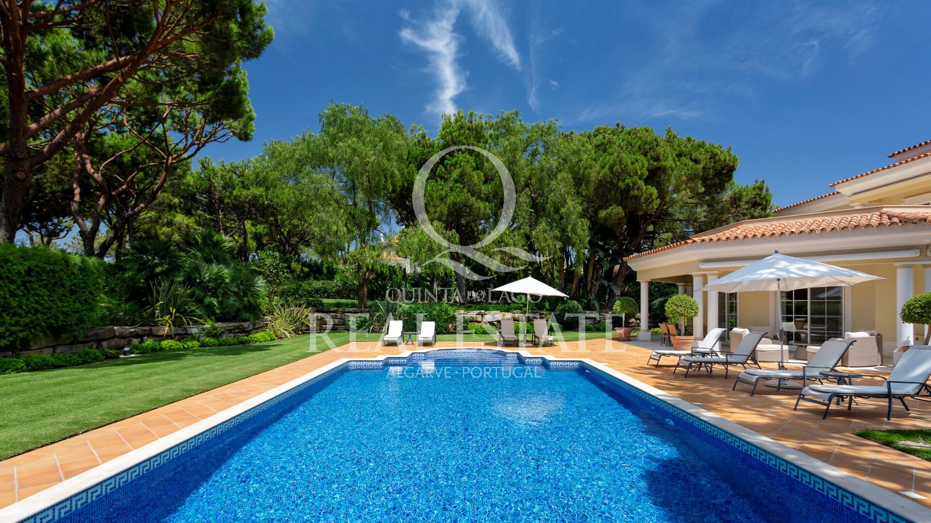 Excelent location, in one of the most desirable Quinta do Lago addresses this immaculate and sophisticated villa is within a short stroll from Quinta Shopping and the well known state of the arts Sports Campus. An immaculate home offering generous accomodation with 4 bedrooms and 4 bathrooms filled with natural light. Living space includes a large, sun-filled southwest-facing living room with adjoining kitchen and dining area, under-floor heating as well as a wonderful terrace among its many highlights. The villa has a large basement with games room, storage and garage area. Built in 2003, this impressive property is set within a mature landscaped garden with impressive grounds, a wonderful heated swimming pool, covered terraces and plenty of privacy within its ample plot. Offering amazing views over the Quinta do Lago North Course and tranquil lake, making this remarkable property a dream place to reside, both inside and out.