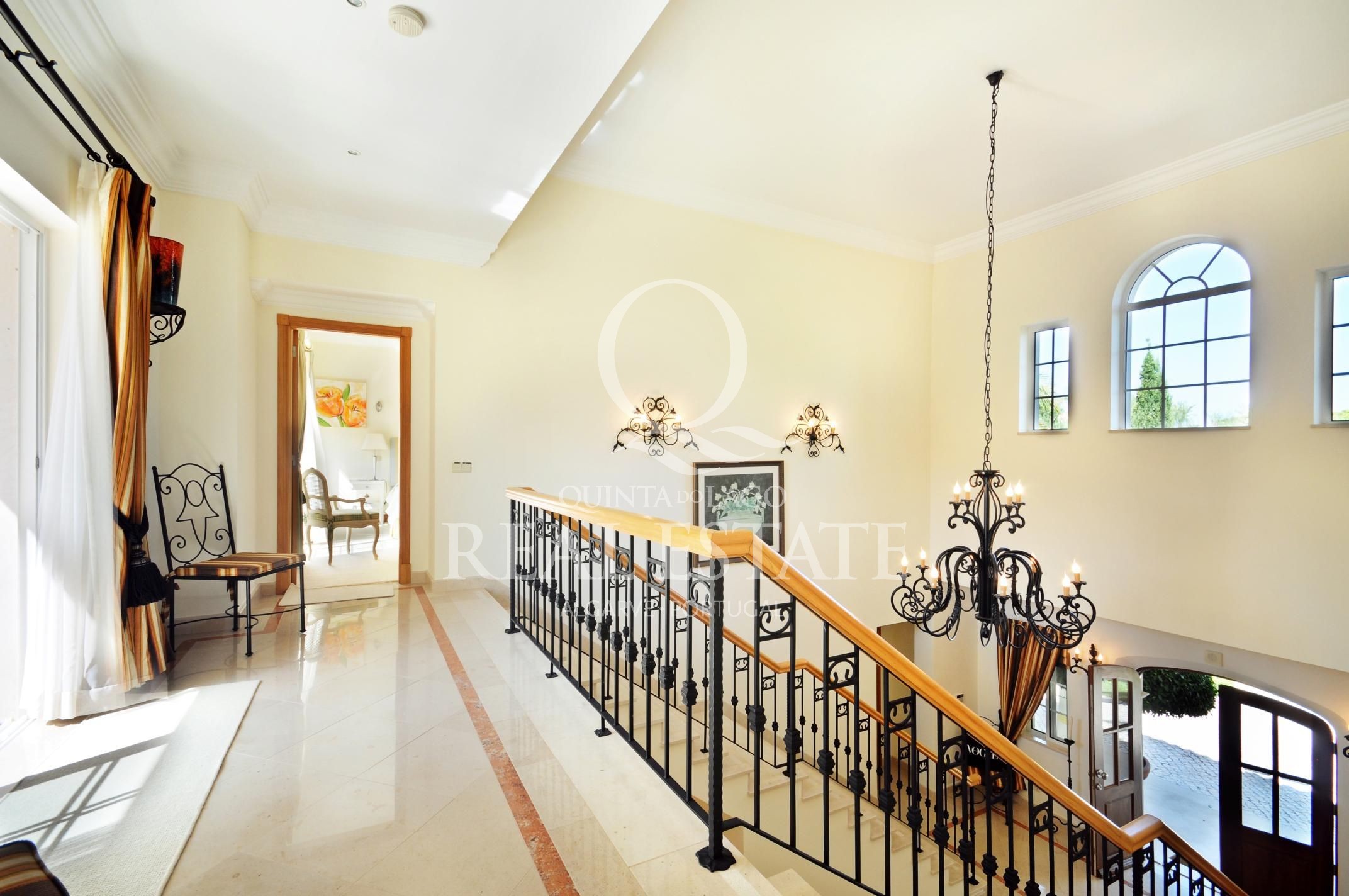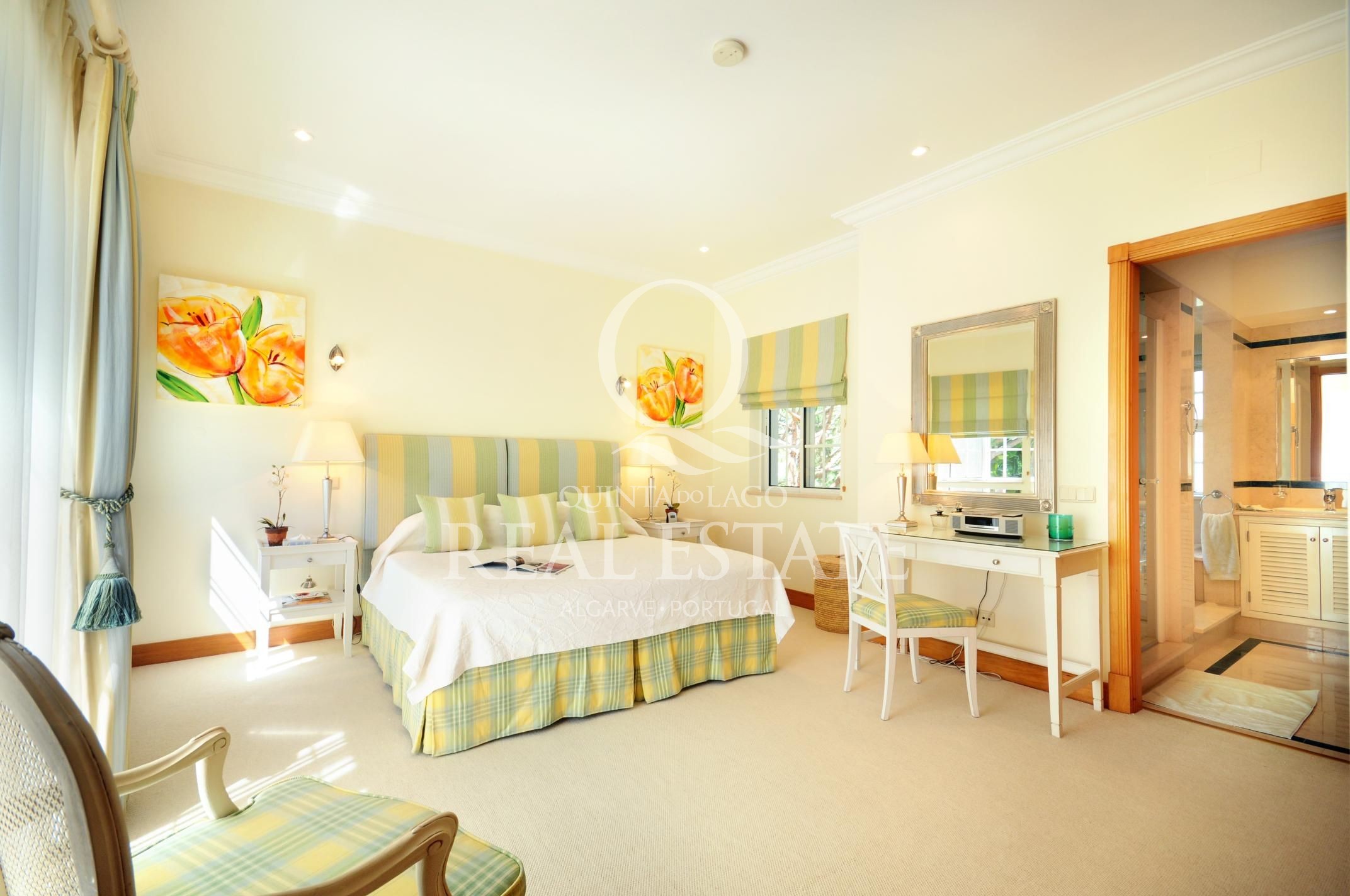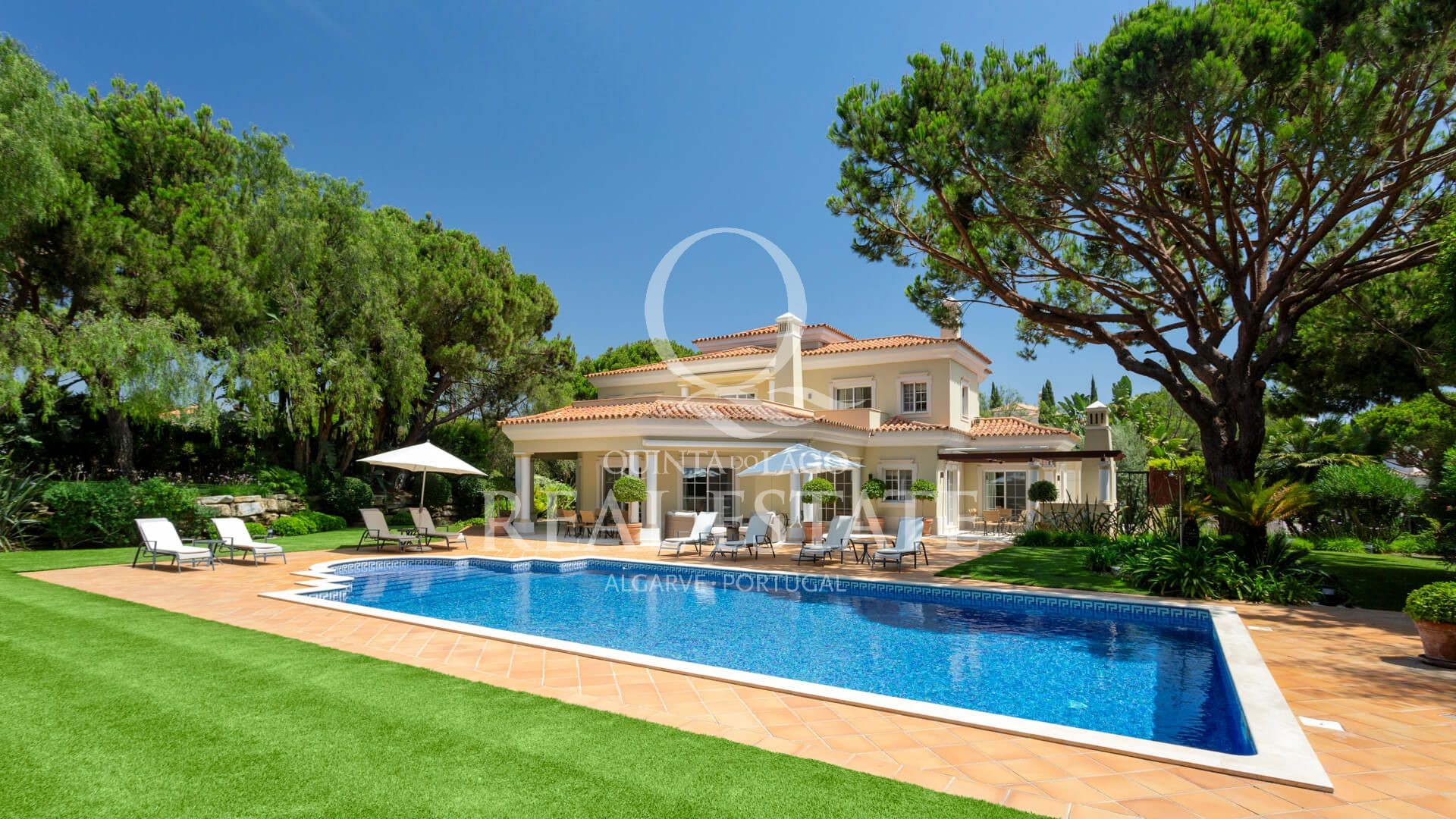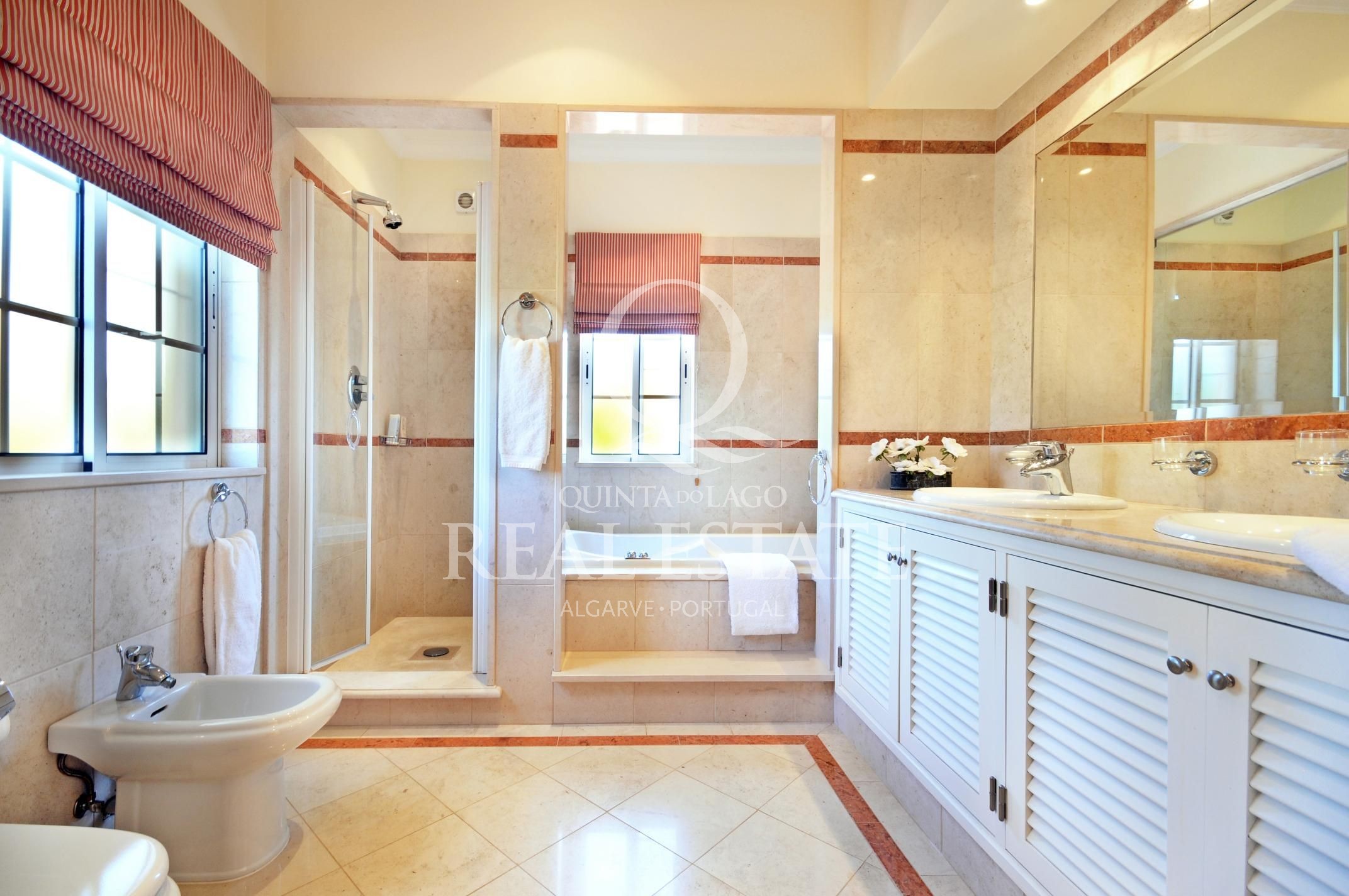 Excelent location, in one of the most desirable Quinta do Lago addresses this immaculate and sophisticated villa is within a short stroll from Quinta Shopping and the well known state of the arts Sports Campus. An immaculate home offering generous accomodation with 4 bedrooms and 4 bathrooms filled with natural light. Living space includes a large, sun-filled southwest-facing living room with adjoining kitchen and dining area, under-floor heating as well as a wonderful terrace among its many highlights. The villa has a large basement with games room, storage and garage area. Built in 2003, this impressive property is set within a mature landscaped garden with impressive grounds, a wonderful heated swimming pool, covered terraces and plenty of privacy within its ample plot. Offering amazing views over the Quinta do Lago North Course and tranquil lake, making this remarkable property a dream place to reside, both inside and out.