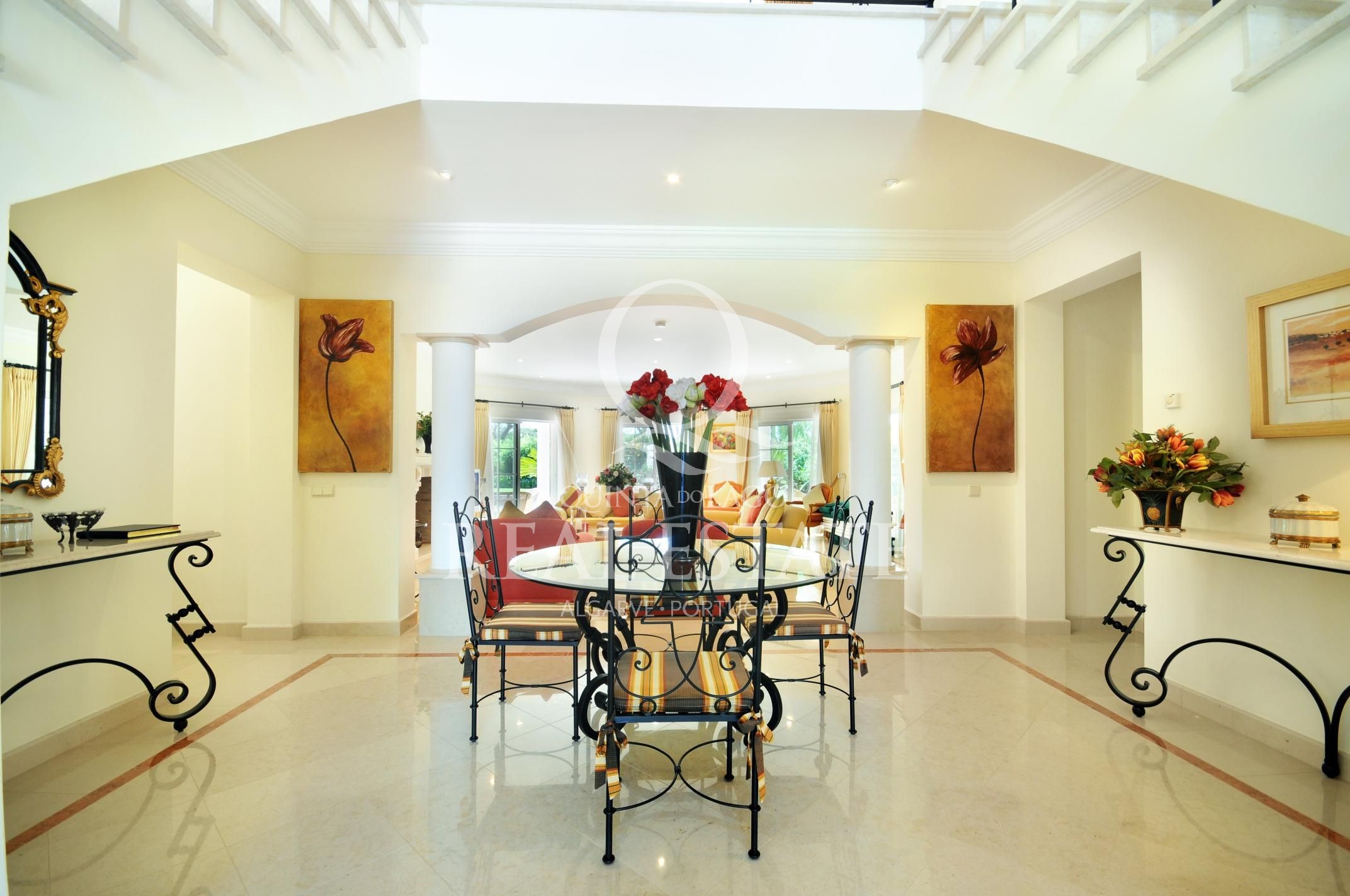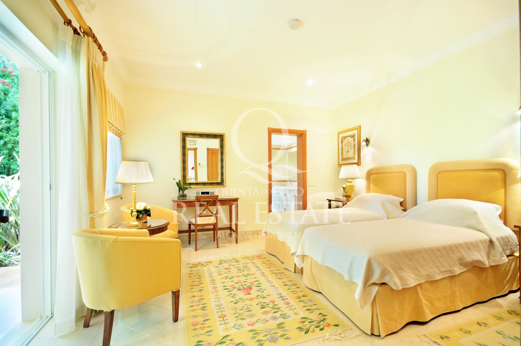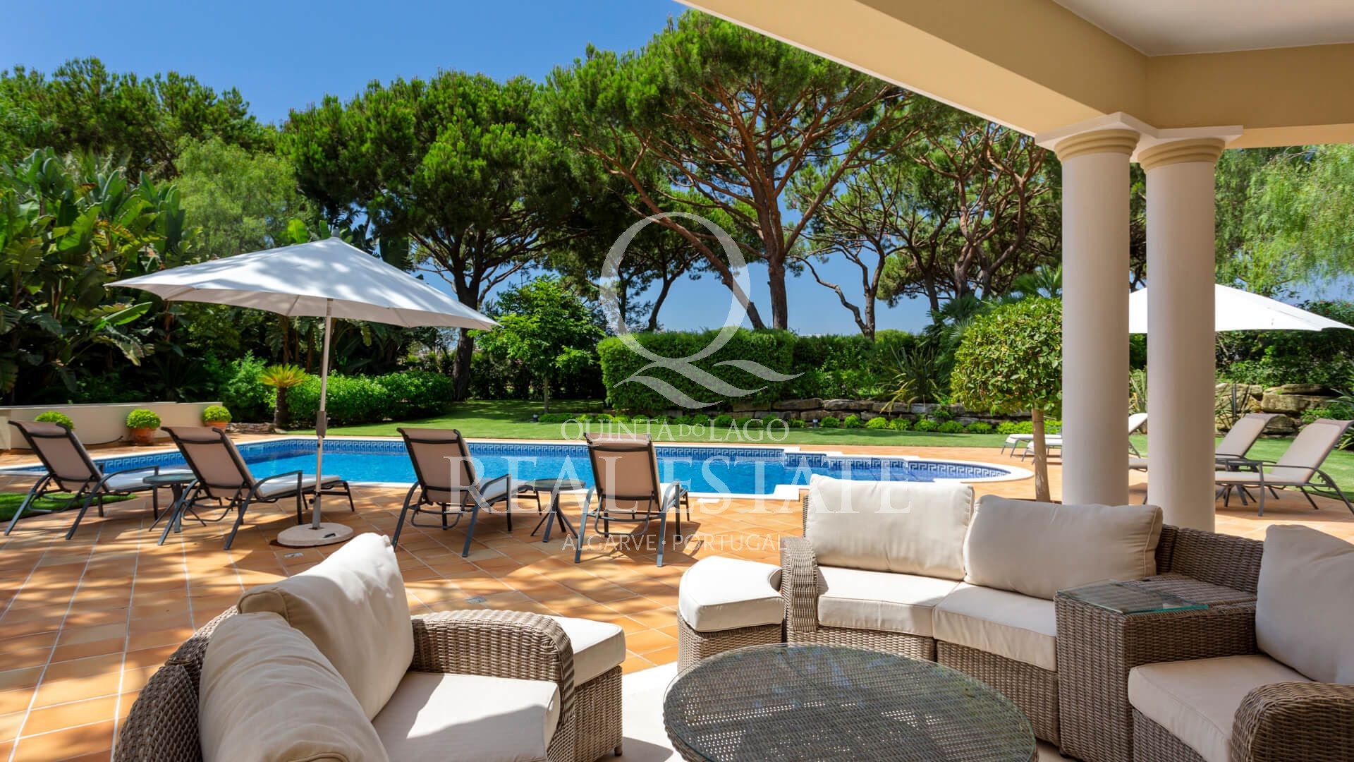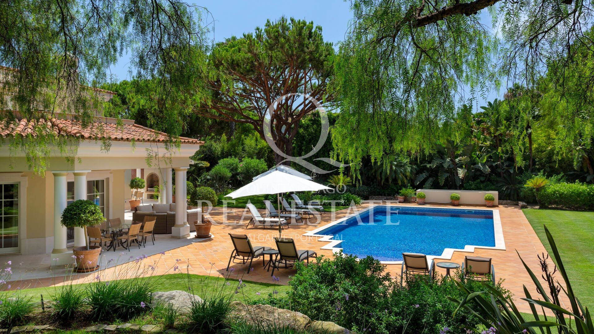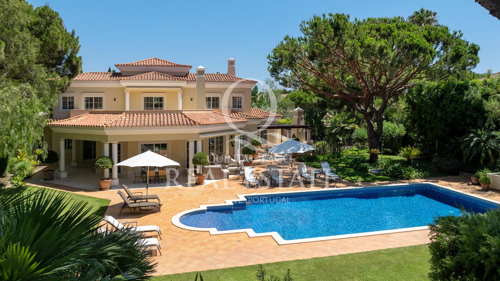 Excelent location, in one of the most desirable Quinta do Lago addresses this immaculate and sophisticated villa is within a short stroll from Quinta Shopping and the well known state of the arts Sports Campus. An immaculate home offering generous accomodation with 4 bedrooms and 4 bathrooms filled with natural light. Living space includes a large, sun-filled southwest-facing living room with adjoining kitchen and dining area, under-floor heating as well as a wonderful terrace among its many highlights. The villa has a large basement with games room, storage and garage area. Built in 2003, this impressive property is set within a mature landscaped garden with impressive grounds, a wonderful heated swimming pool, covered terraces and plenty of privacy within its ample plot. Offering amazing views over the Quinta do Lago North Course and tranquil lake, making this remarkable property a dream place to reside, both inside and out.