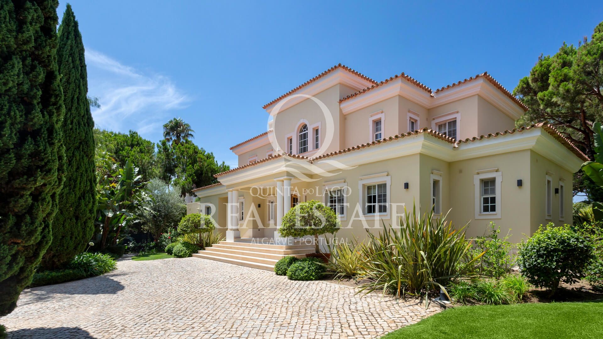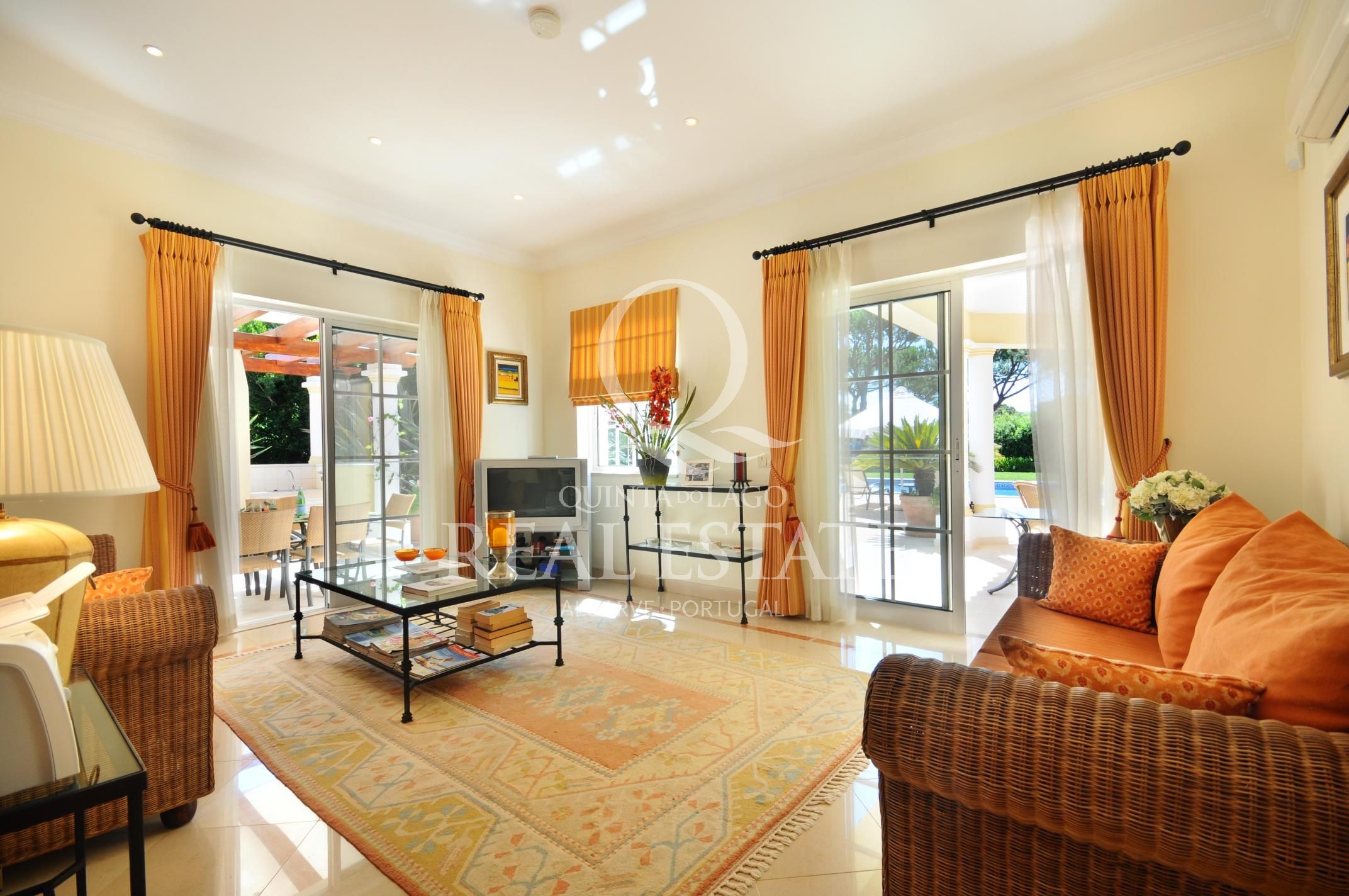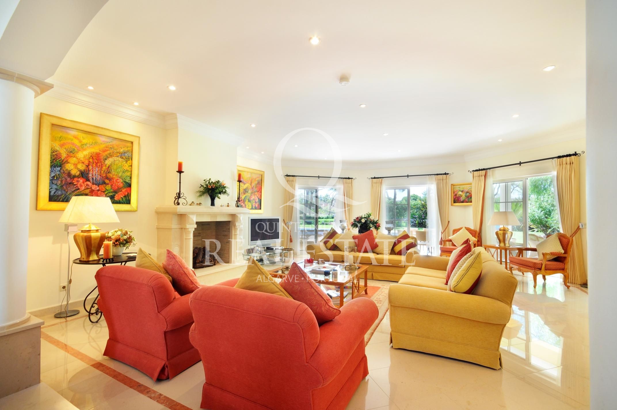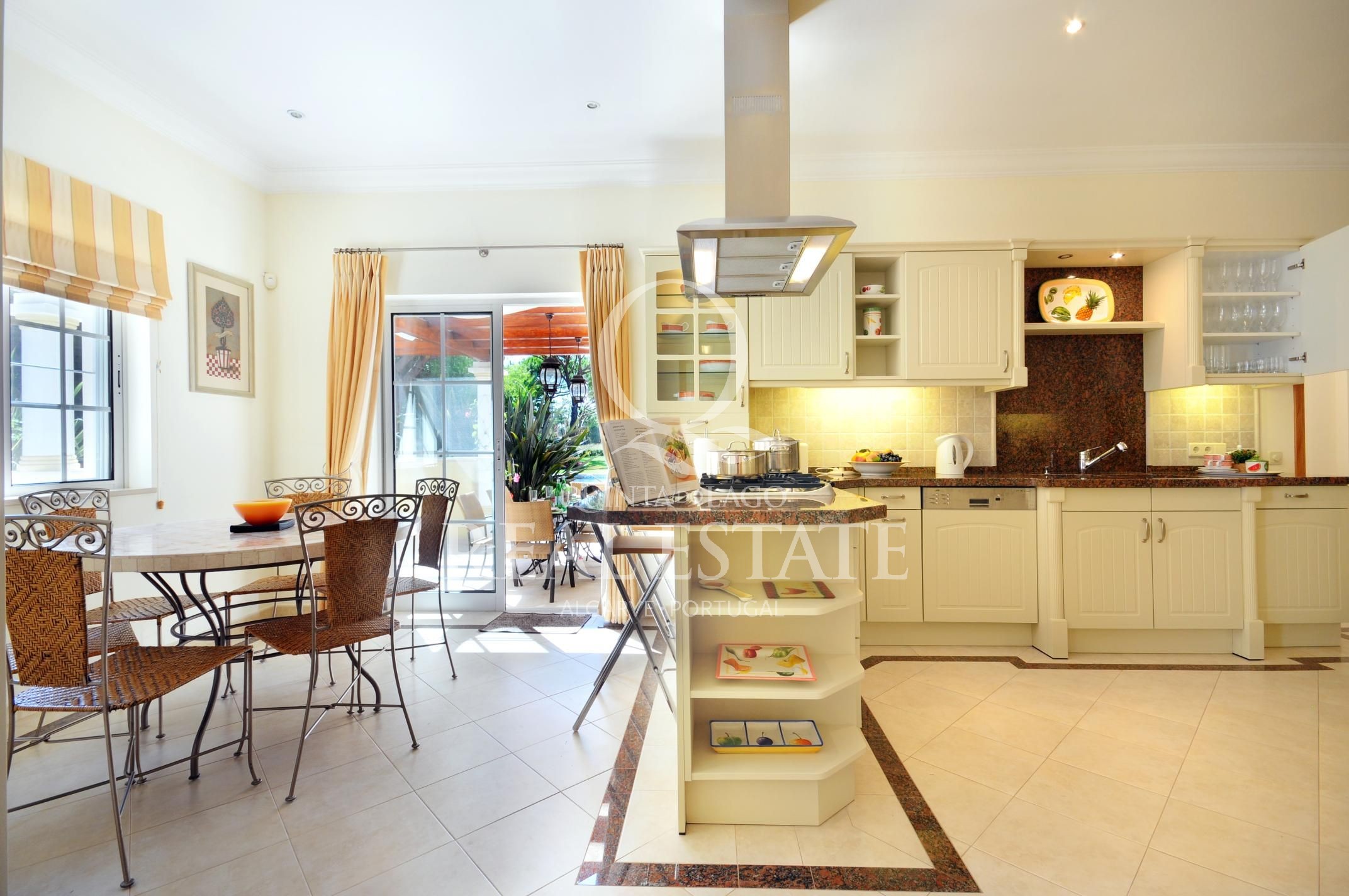 Excelent location, in one of the most desirable Quinta do Lago addresses this immaculate and sophisticated villa is within a short stroll from Quinta Shopping and the well known state of the arts Sports Campus. An immaculate home offering generous accomodation with 4 bedrooms and 4 bathrooms filled with natural light. Living space includes a large, sun-filled southwest-facing living room with adjoining kitchen and dining area, under-floor heating as well as a wonderful terrace among its many highlights. The villa has a large basement with games room, storage and garage area. Built in 2003, this impressive property is set within a mature landscaped garden with impressive grounds, a wonderful heated swimming pool, covered terraces and plenty of privacy within its ample plot. Offering amazing views over the Quinta do Lago North Course and tranquil lake, making this remarkable property a dream place to reside, both inside and out.