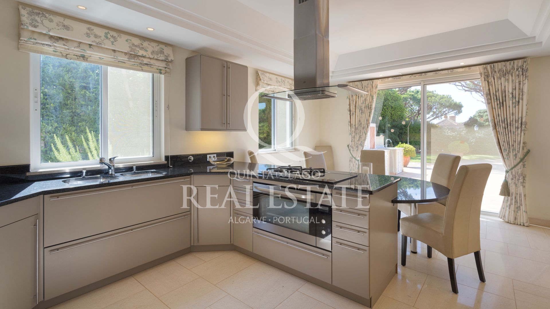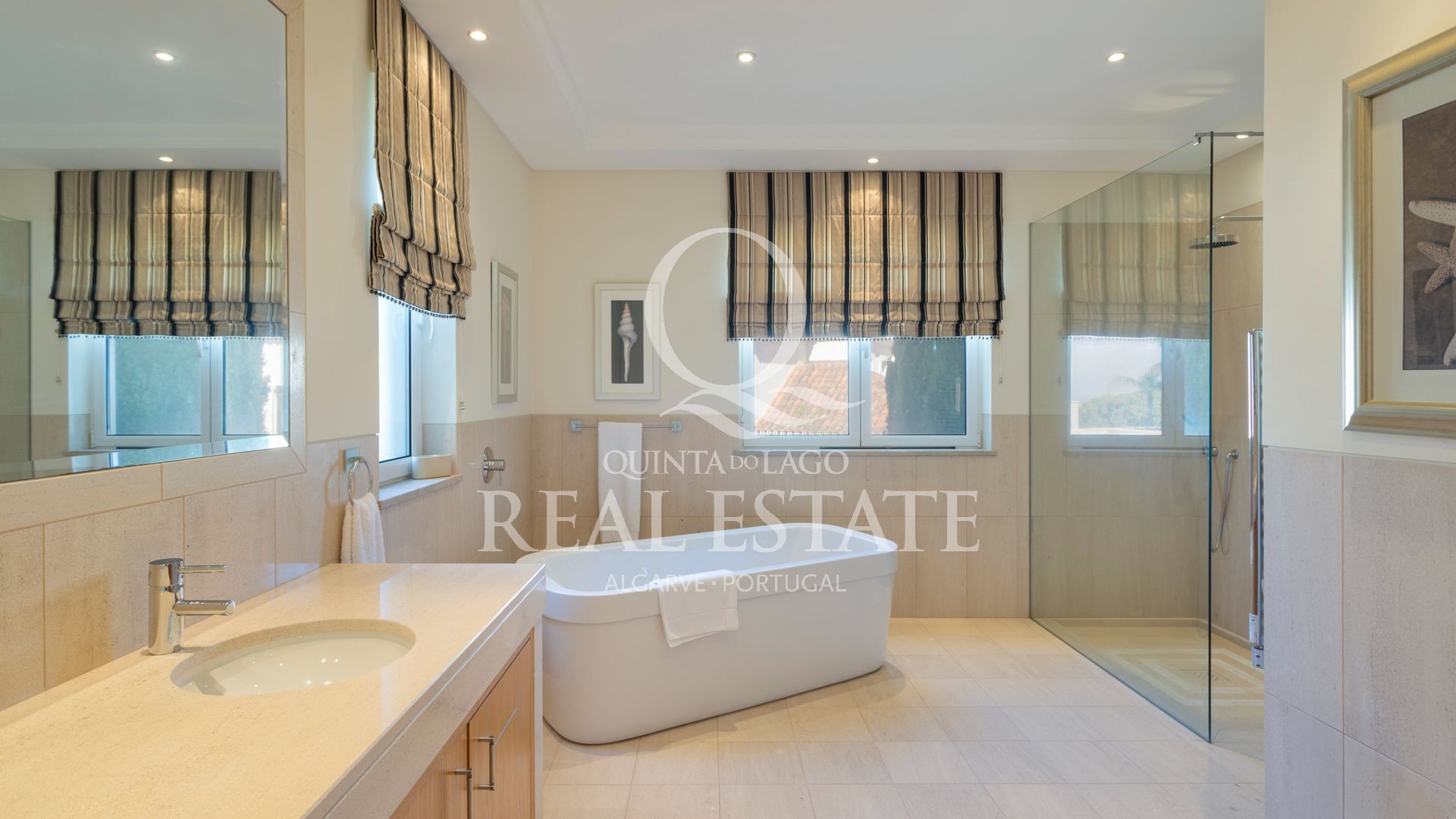 Nestled in a coveted location within Quinta do Lago, boasting breathtaking views of the nature reserve and the sea, this stylish south-facing villa provides an elegant family home in walking distance of the nature reserve and the beach.