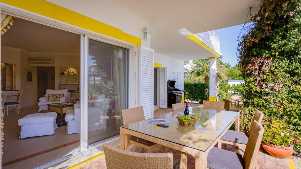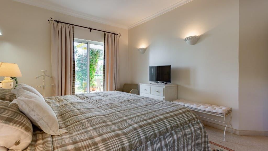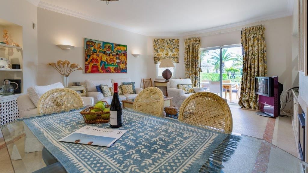 Simpático apartamento térreo de dois quartos, localizado no condomínio Encosta do Lago na Quinta do Lago. Com uma área de estar e jantar em plano aberto, cozinha totalmente equipada e muita luz natural, esta propriedade dispõe de um quarto principal com casa de banho privativa com banheira e chuveiro. O segundo quarto é um quarto duplo com casa de banho privativa com chuveiro. A sala tem acesso à fantástica área exterior onde pode usufruir de uma piscina privada. A apenas 5 minutos encontra-se o lago, onde pode desfrutar de vistas deslumbrantes e passeios ao longo da Ria Formosa. O condomínio tem também uma piscina comum e um bar de apoio à piscina. A academia, court de ténis, sauna, spa e restaurante também estão disponíveis durante a sua estadia. Este apartamento dispõe ainda de ar condicionado, serviço de TV e WI-FI e estacionamento no exterior da propriedade.