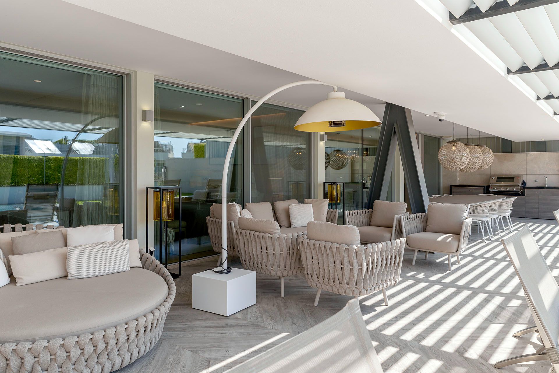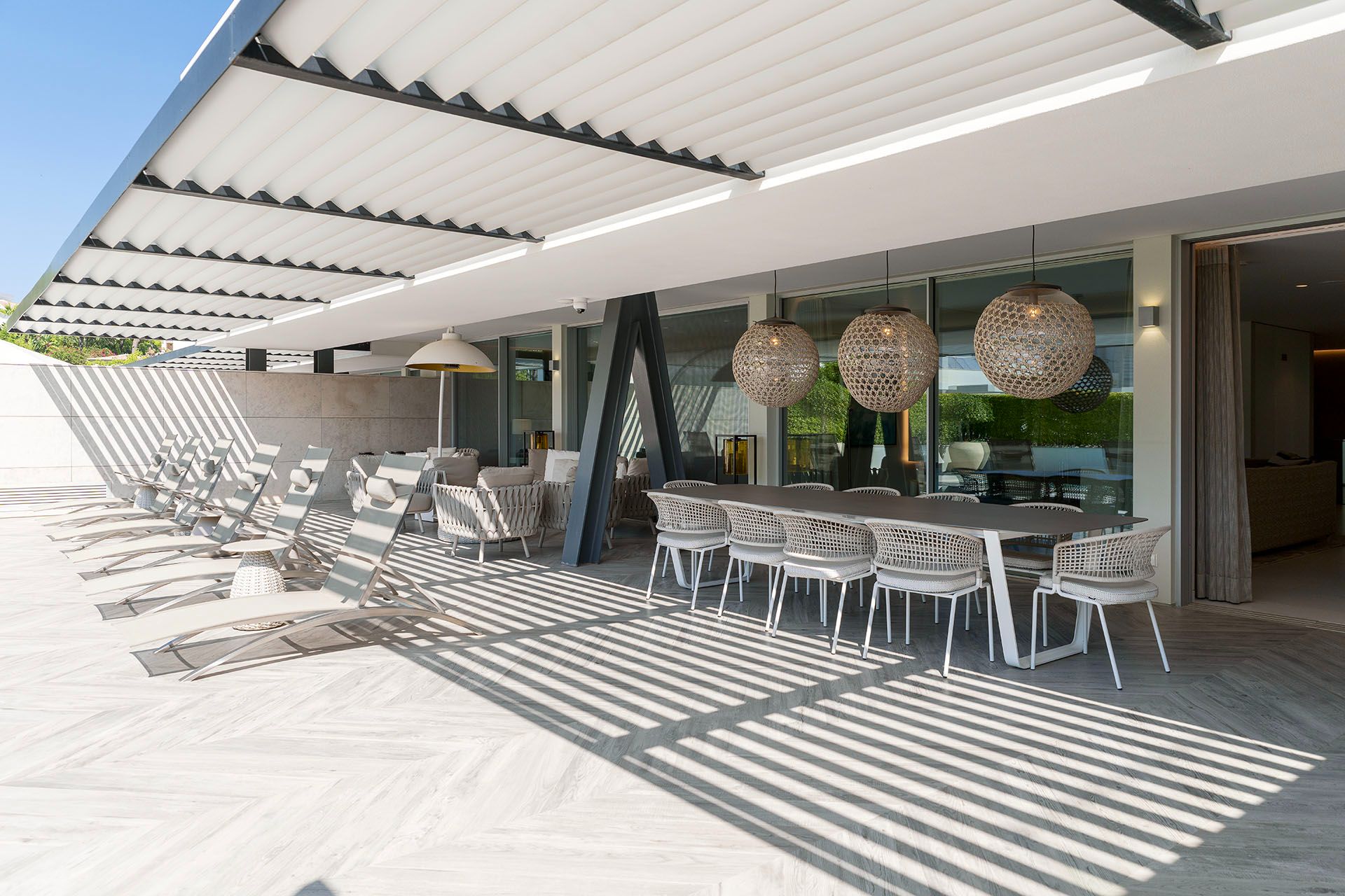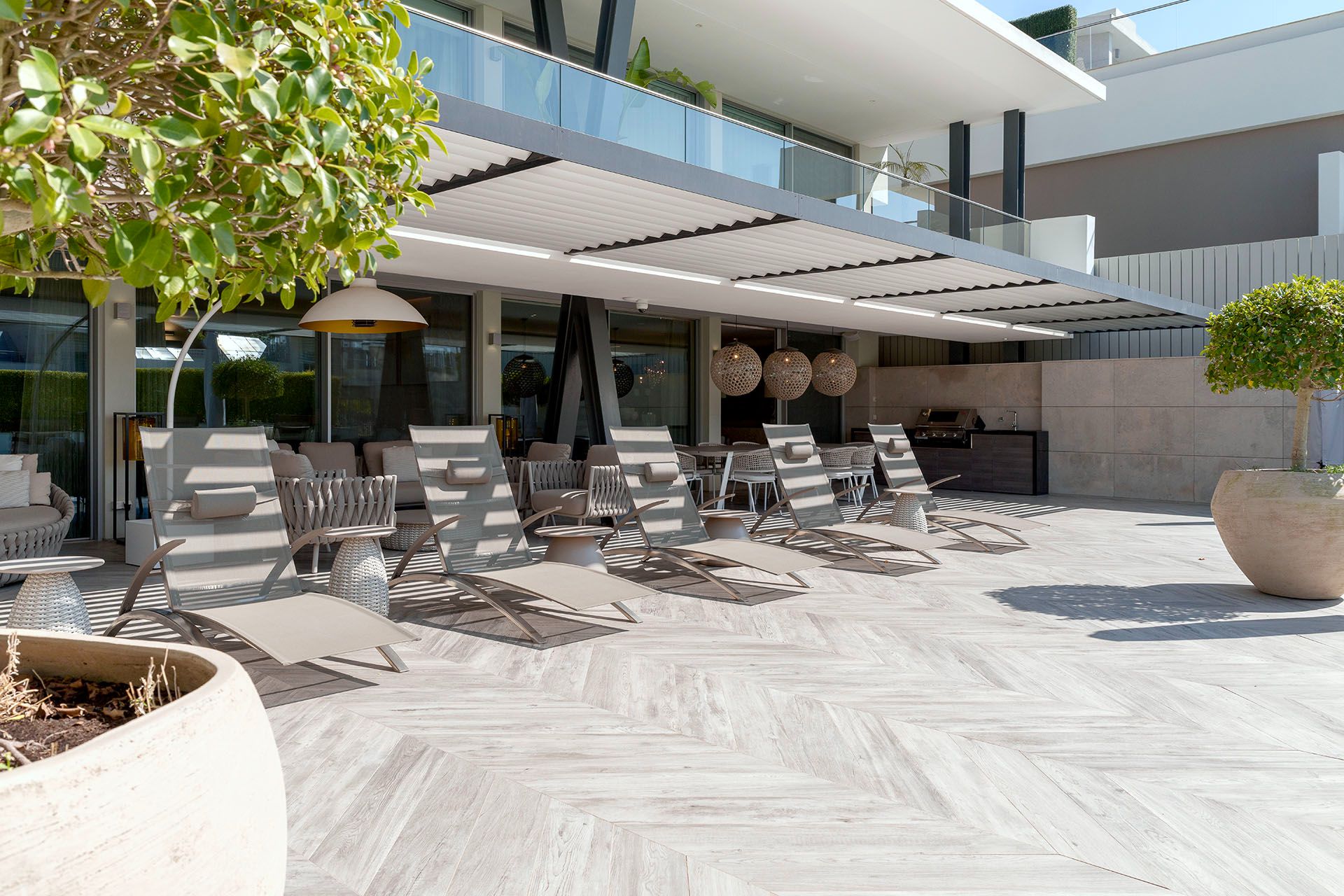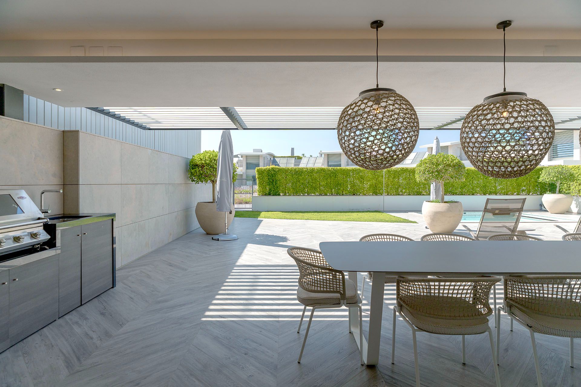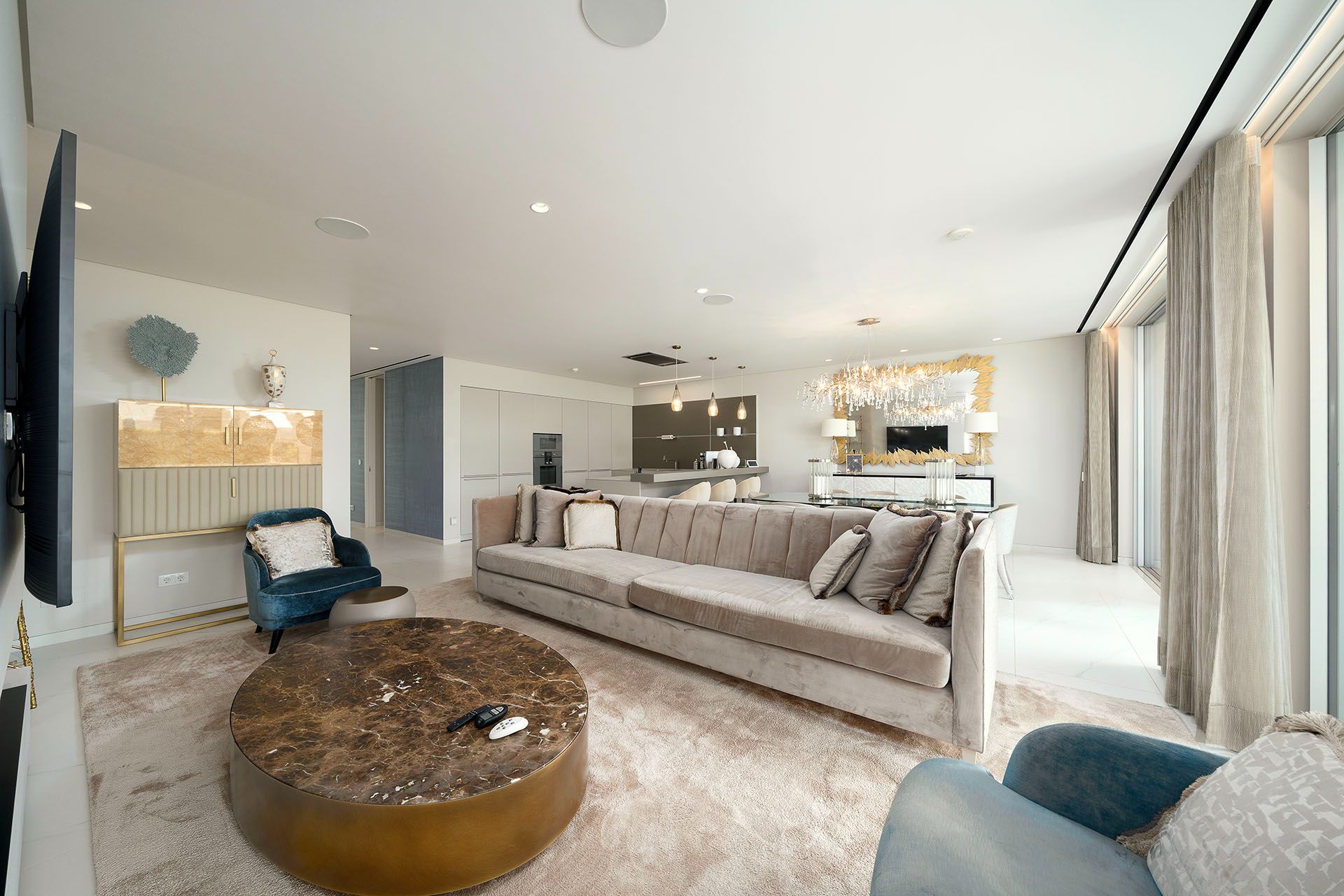 Este deslumbrante apartamento garden, é uma combinação de design arquitetónico único e simples e luxuoso, com quatro quartos e cinco casas de banho e acabamentos de alto padrão. As áreas de estar de plano aberto, claras e espaçosas, fluem naturalmente para o espaço ao ar livre, completos com área para refeições ao ar livre e piscina privativa. O apartamento acomoda até 8 pessoas, com o quarto principal, 2 quartos duplos e um quarto twin, todos com casa de banho privativa. A propriedade inclui uma cozinha totalmente equipada com eletrodomésticos e móveis de luxo, área de estar e jantar e garagem.
