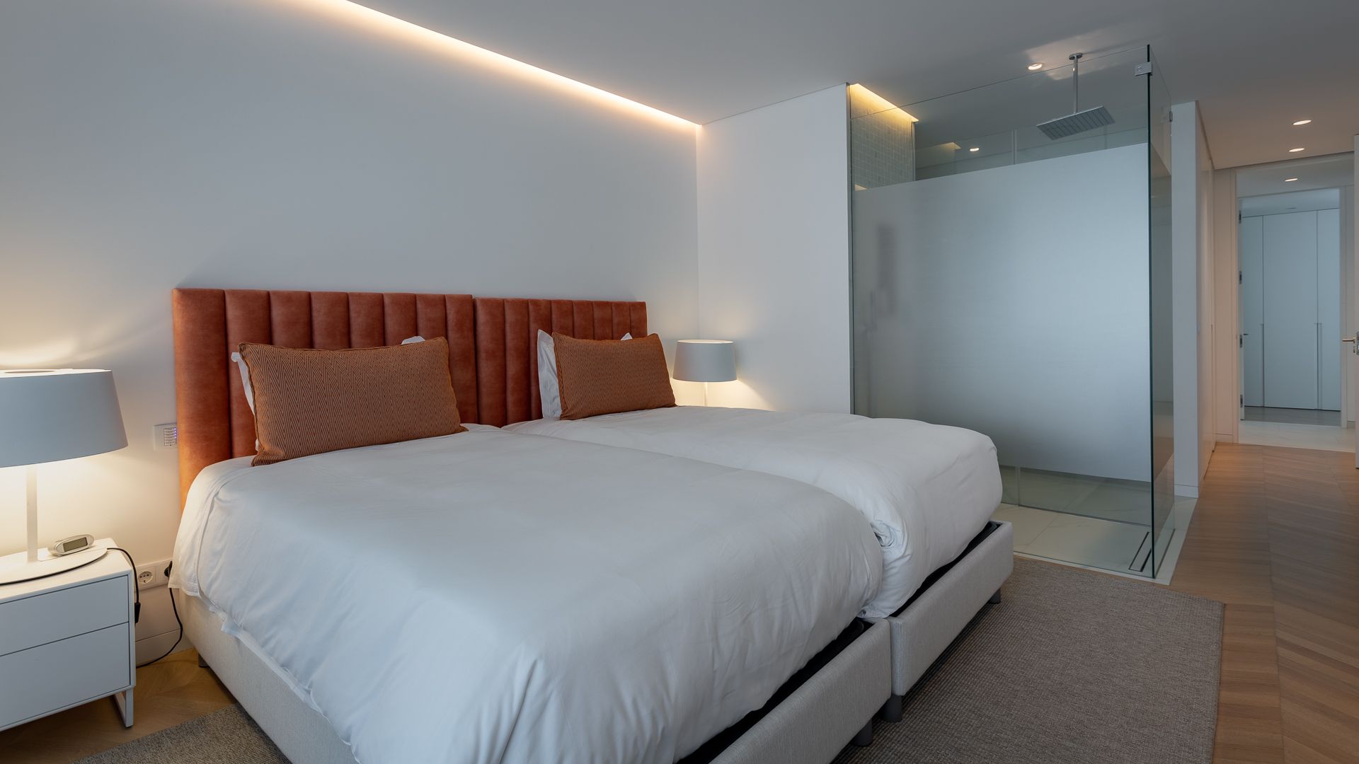 Este deslumbrante apartamento garden, é uma combinação de design arquitetónico único e simples e luxuoso, com três quartos e cinco casas de banho e acabamentos de alto padrão. As áreas de estar de plano aberto, claras e espaçosas, fluem naturalmente para o espaço ao ar livre, completos com área para refeições ao ar livre e piscina privativa. O apartamento acomoda até 6 pessoas, com o quarto principal e mais dois quartos twins, todos com casa de banho privativa. A propriedade inclui uma cozinha totalmente equipada com eletrodomésticos e móveis de luxo, área de estar e jantar e garagem. O clube de residentes, mesmo à porta, está disponível para os hóspedes, com piscina, ginásio, campo de ténis e padle e sala de tratamentos de spa. Poderá também caminhar diretamente para os incríveis restaurantes, trilhos naturais e amenidades de estilo de vida da Quinta do Lago Um Concierge dedicado está disponível para todos os hóspedes da RESERVA, convidando-o a desfrutar de todo o bem-estar durante sua estadia.