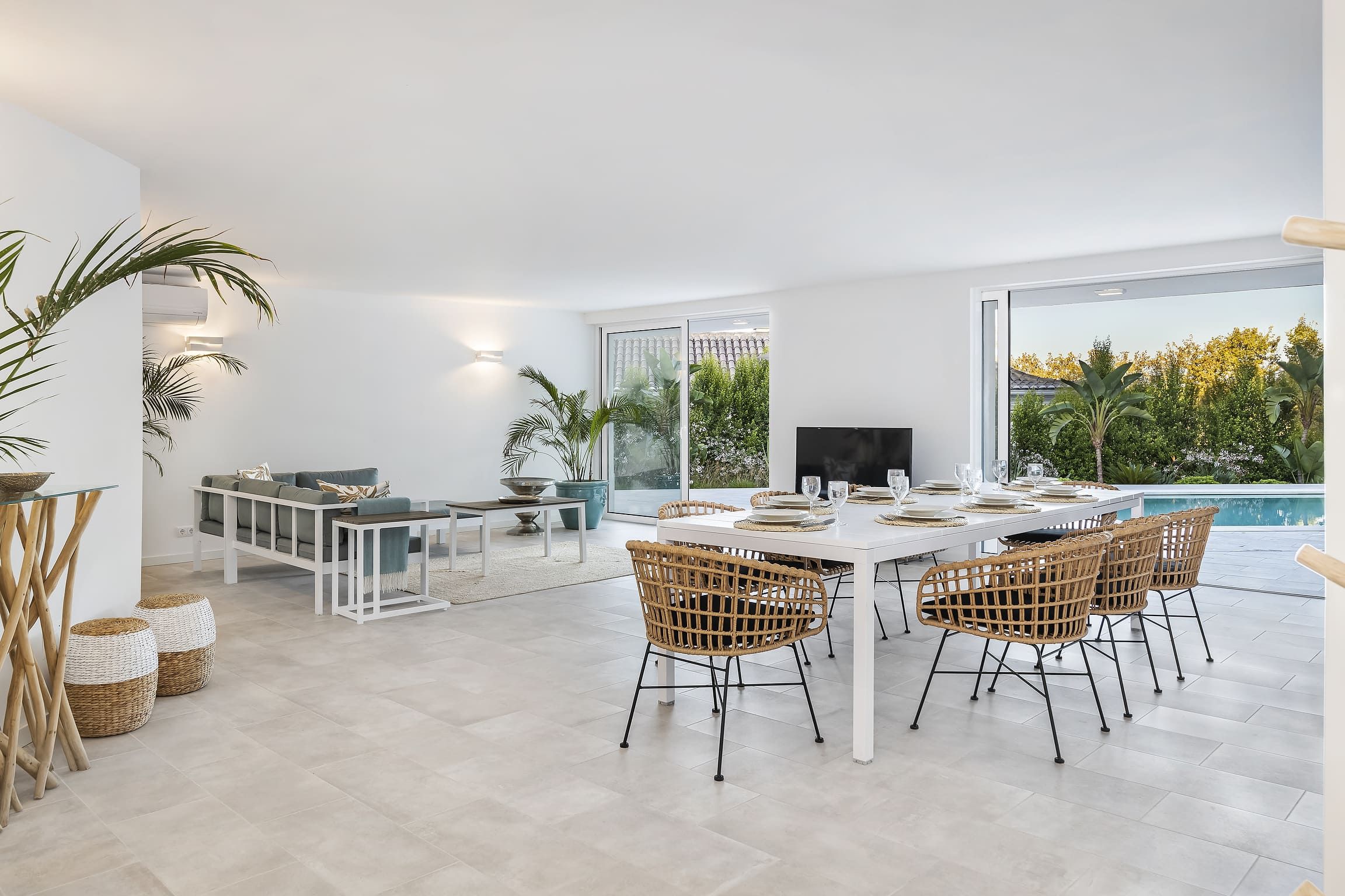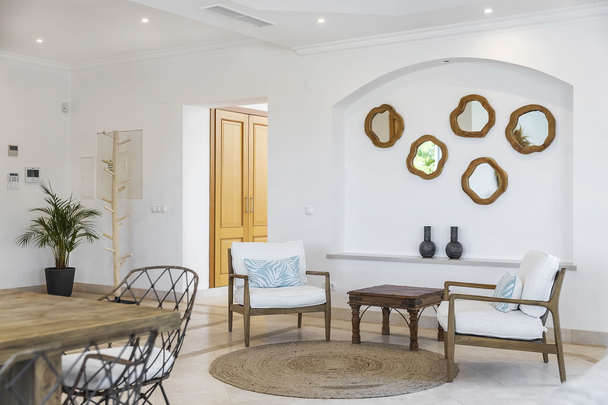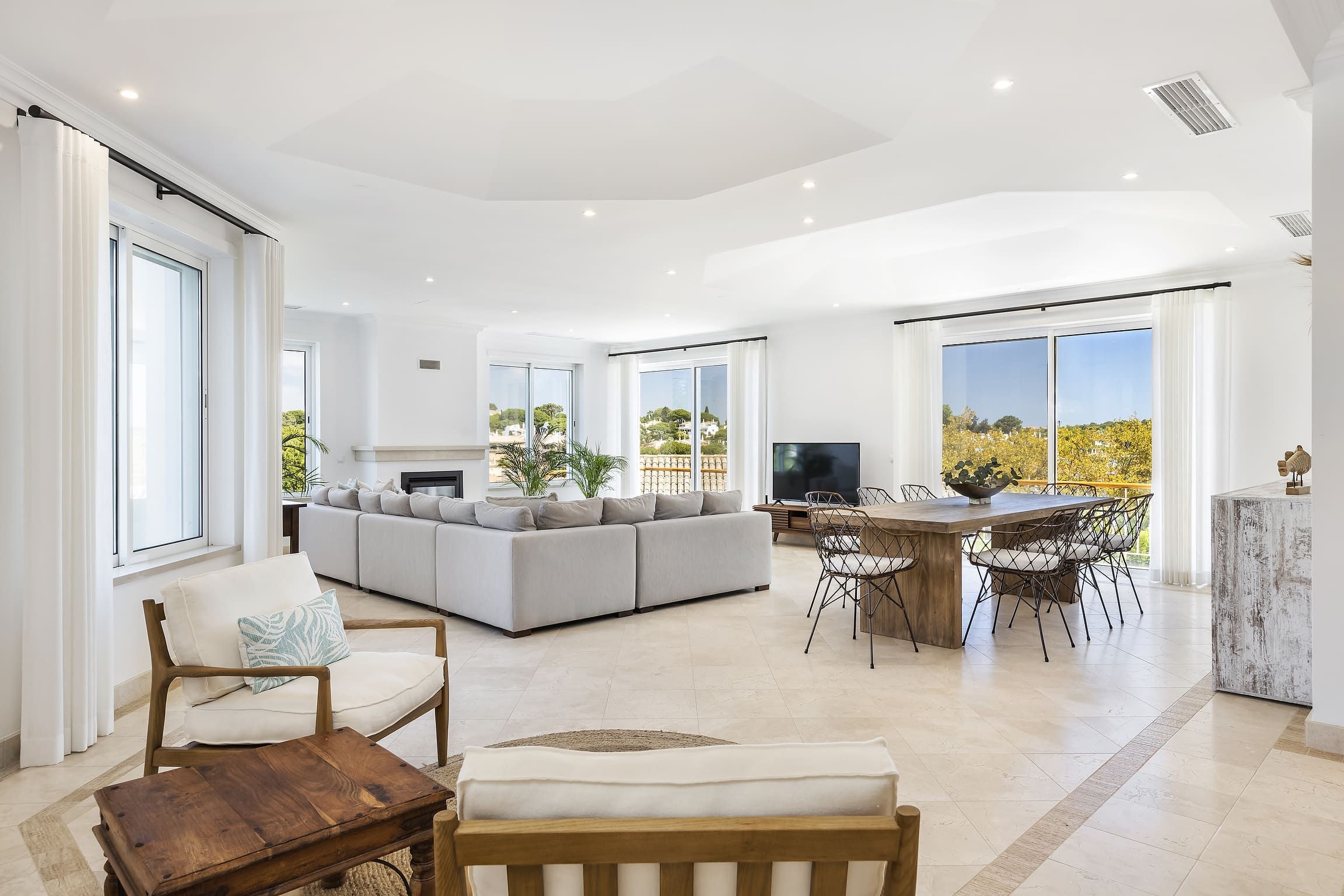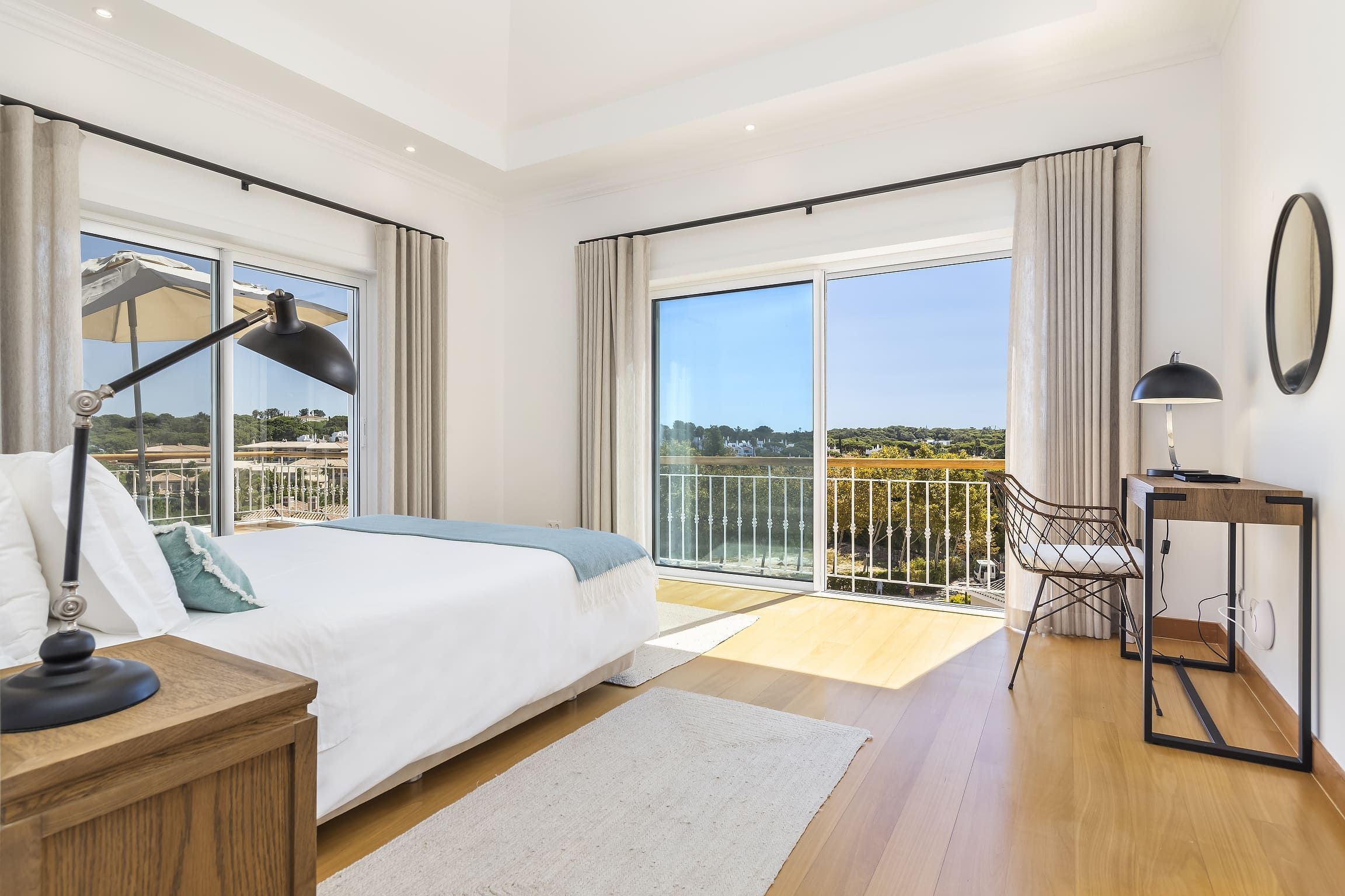 Distribuída por três pisos, a villa dispõe de quatro quartos em suite, garantindo privacidade e comodidade para famílias ou grupos de amigos. Os interiores são amplos e luminosos, com uma cozinha totalmente equipada e áreas pensadas para uma estadia prática e confortável ao longo de todo o ano, com ar condicionado e aquecimento em toda a casa.