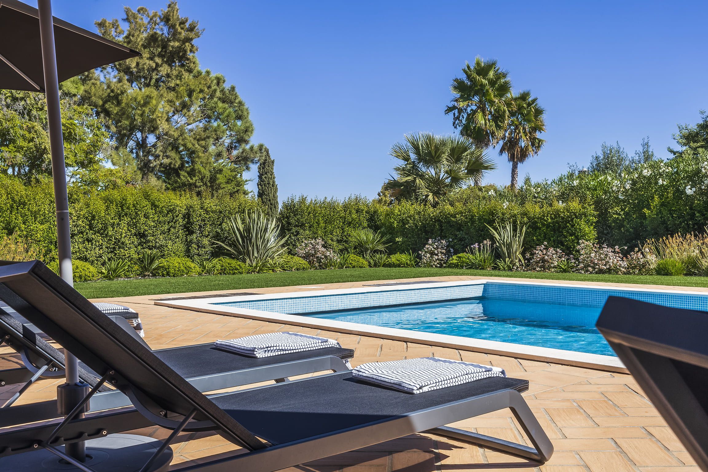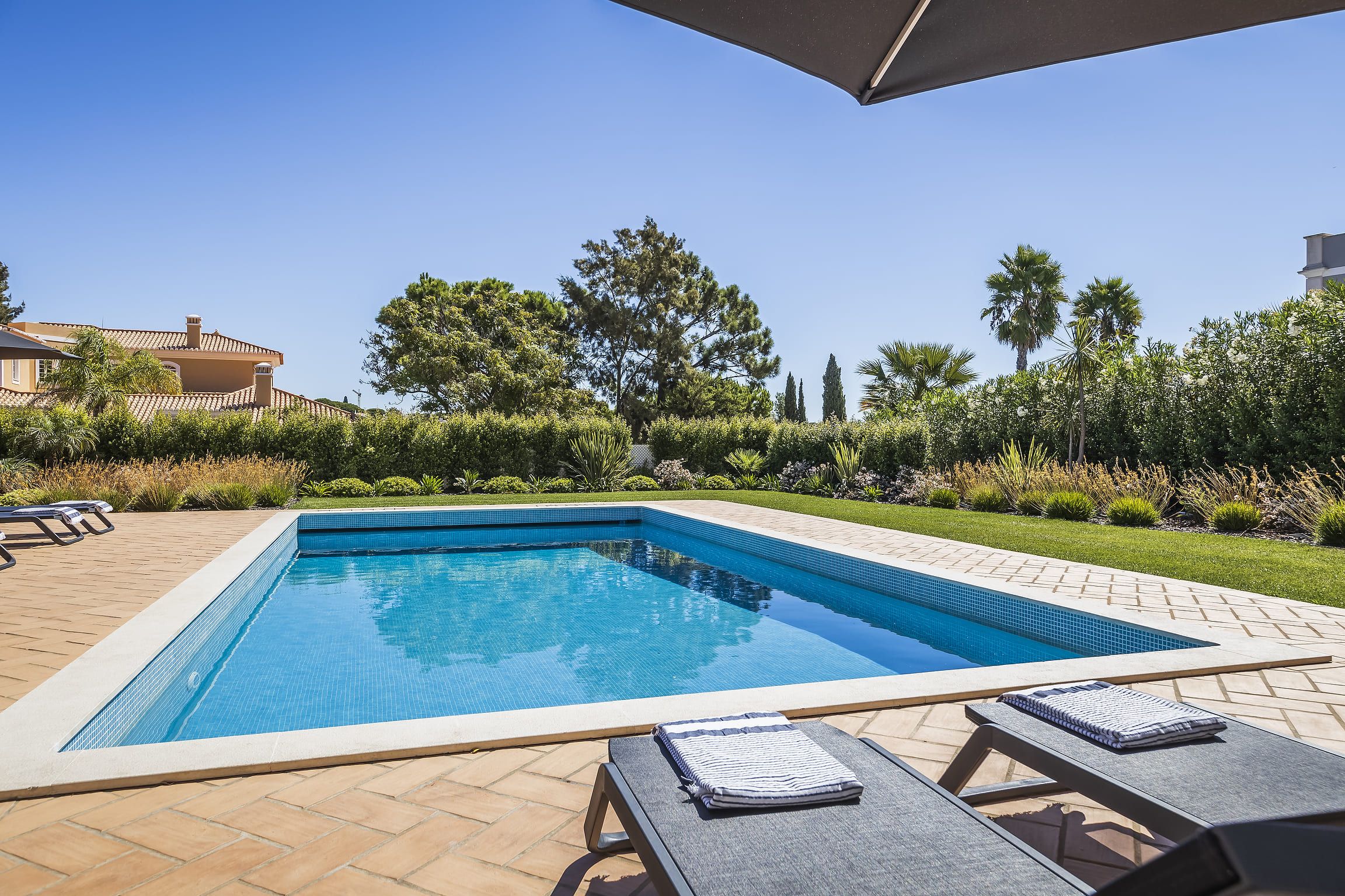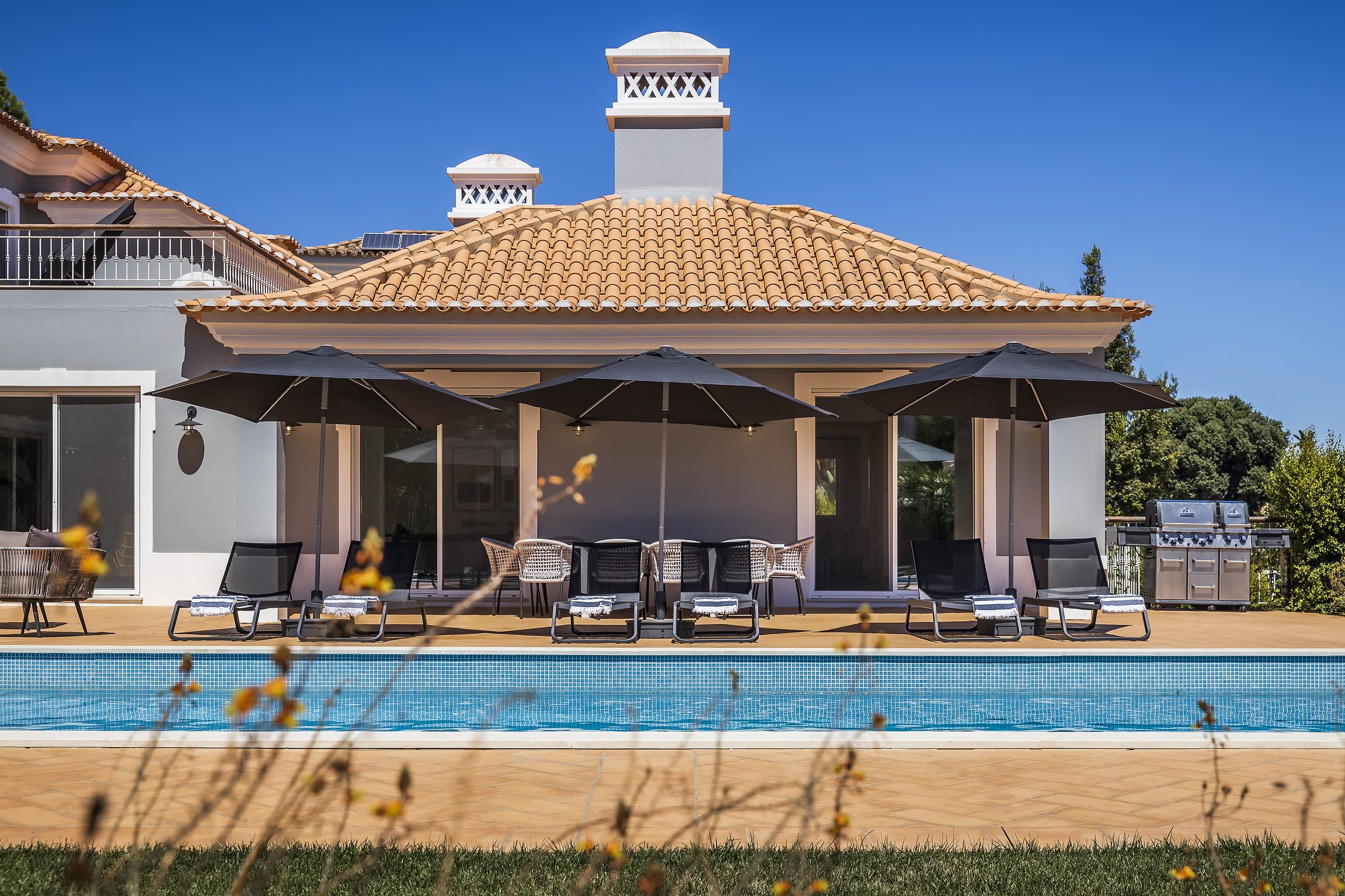 No exterior, a piscina privada oferece o espaço ideal para momentos de lazer e descontração ao sol do Algarve. A villa conta ainda com lavandaria, TV, Wi-Fi e estacionamento exterior, assegurando praticidade durante a estadia.