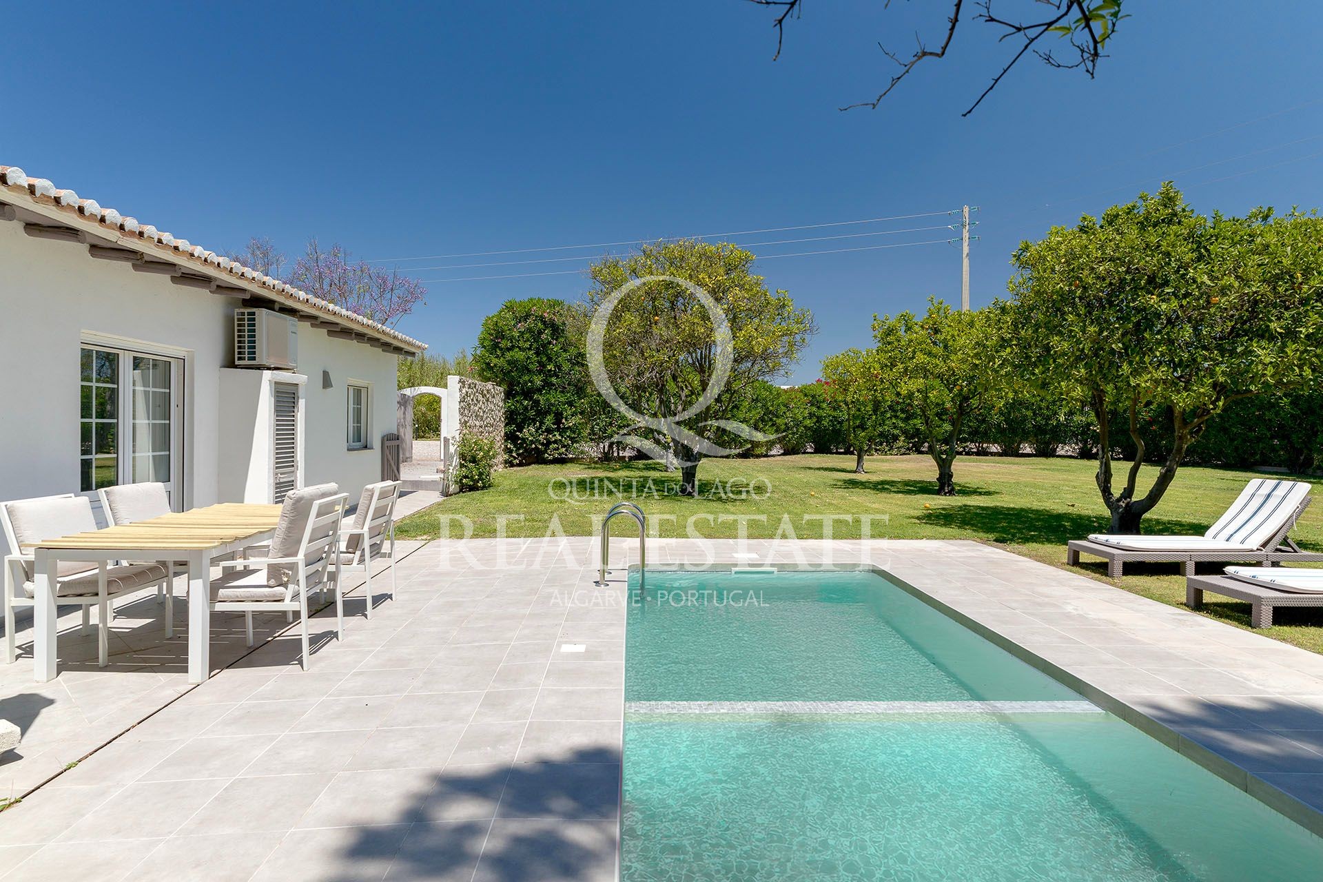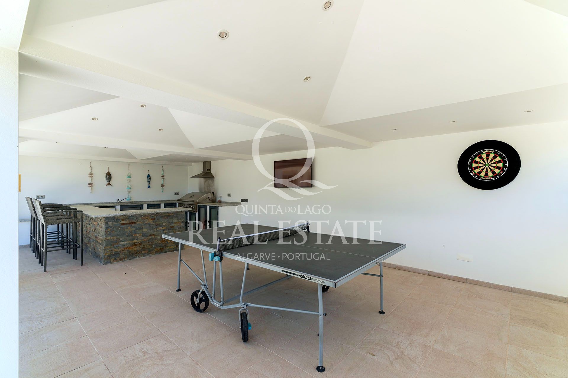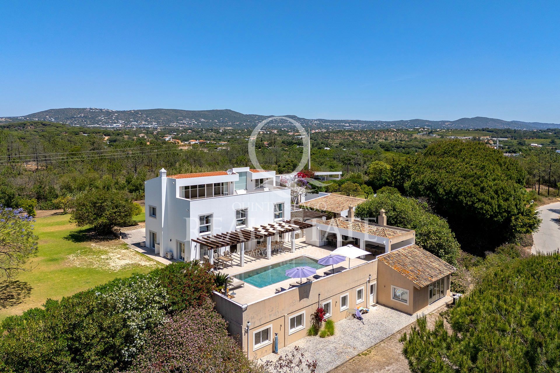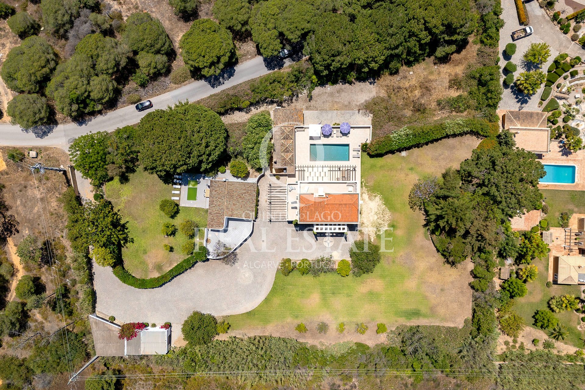 No exterior, encontra o espaço ideal para receber ou desfrutar de refeições informais, com cozinha exterior, zona de BBQ e terraço coberto. A funcionalidade da moradia é reforçada por uma cave, lavandaria, arrumos, aquecimento de pavimento e furo. Apesar do ambiente campestre e sereno, encontra-se a poucos minutos de carro de lojas, cafés, restaurantes, praias deslumbrantes e campos de golfe de excelência. Esta propriedade representa uma oportunidade única para viver o estilo de vida algarvio com total privacidade e elegância.