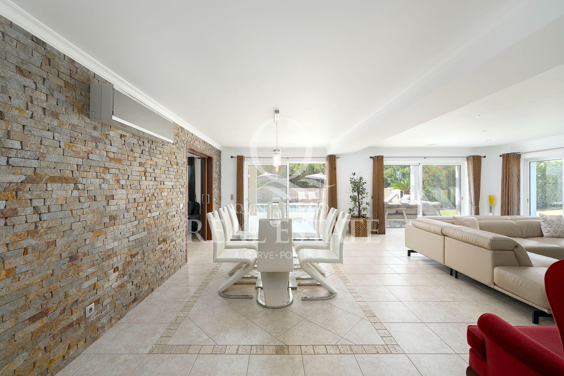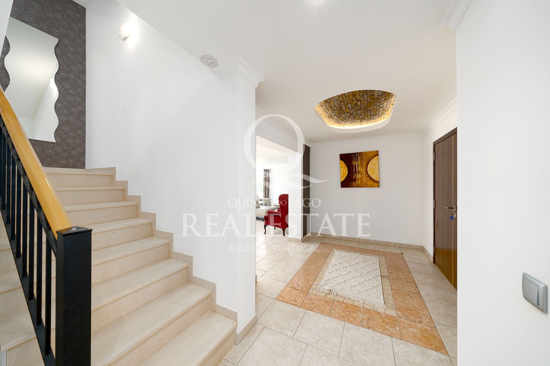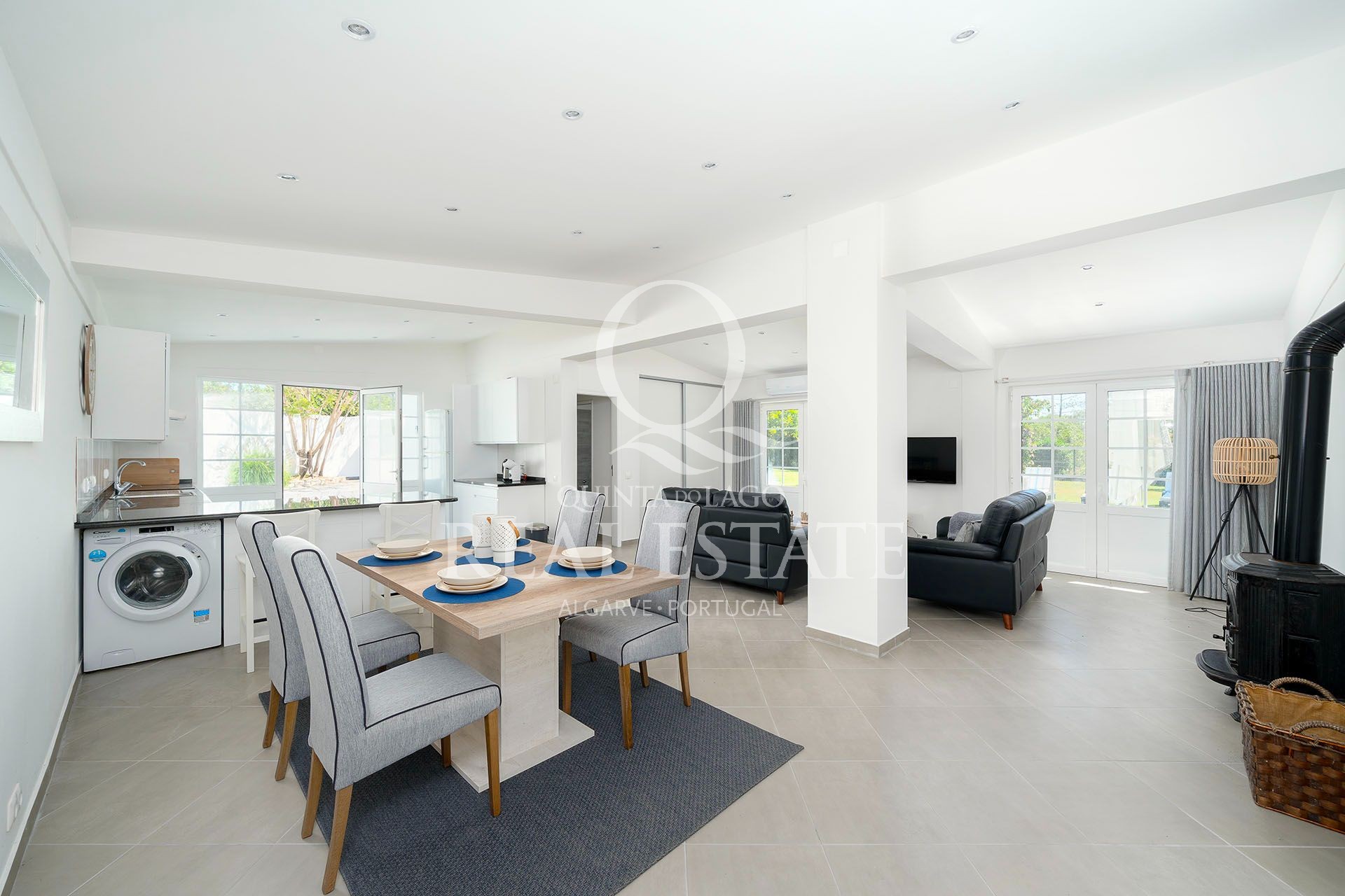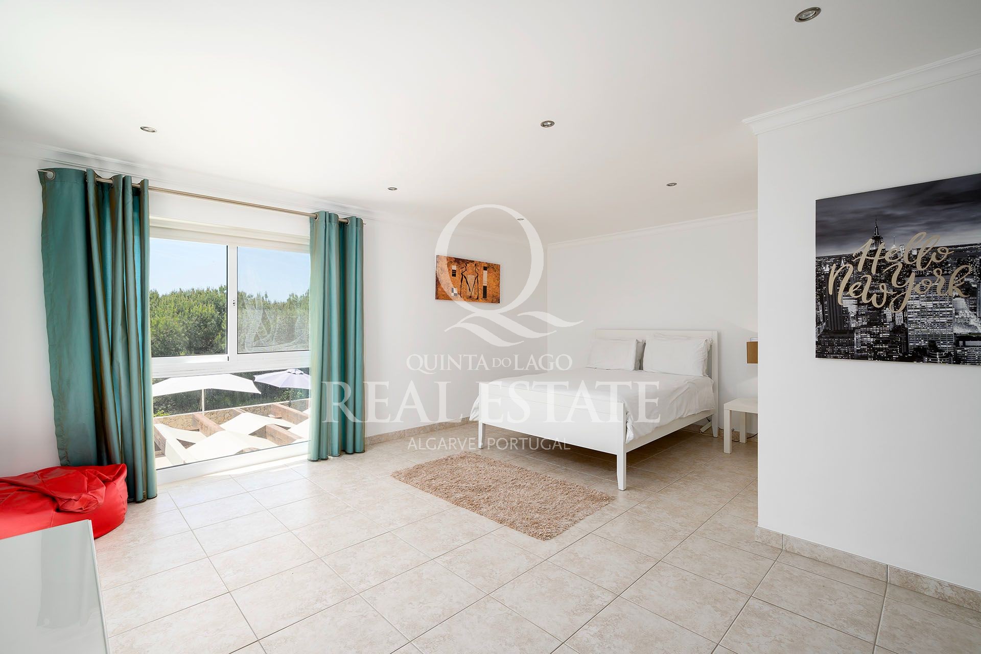 No exterior, encontra o espaço ideal para receber ou desfrutar de refeições informais, com cozinha exterior, zona de BBQ e terraço coberto. A funcionalidade da moradia é reforçada por uma cave, lavandaria, arrumos, aquecimento de pavimento e furo. Apesar do ambiente campestre e sereno, encontra-se a poucos minutos de carro de lojas, cafés, restaurantes, praias deslumbrantes e campos de golfe de excelência. Esta propriedade representa uma oportunidade única para viver o estilo de vida algarvio com total privacidade e elegância.