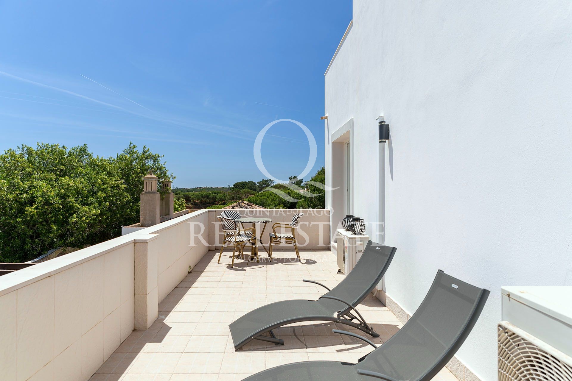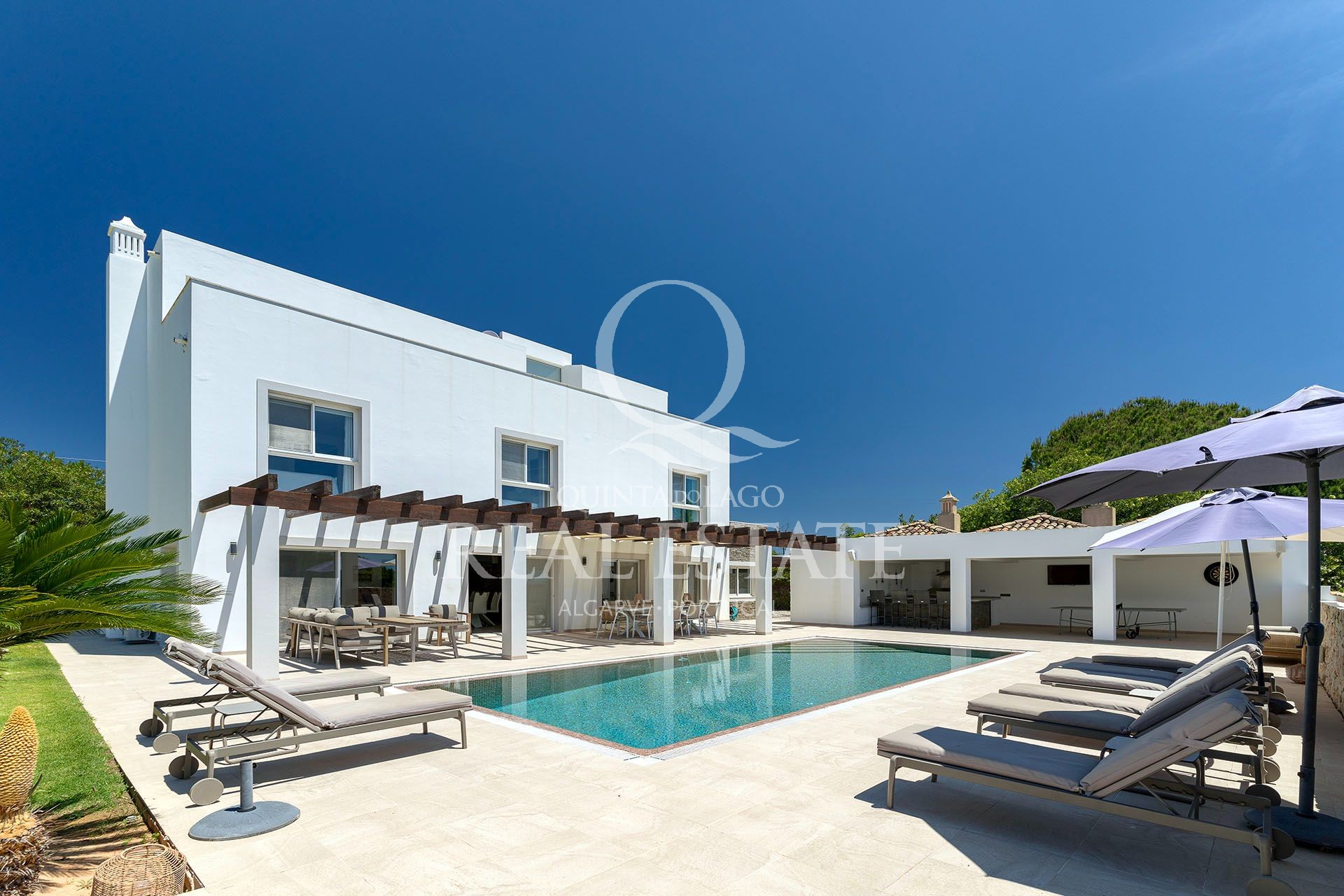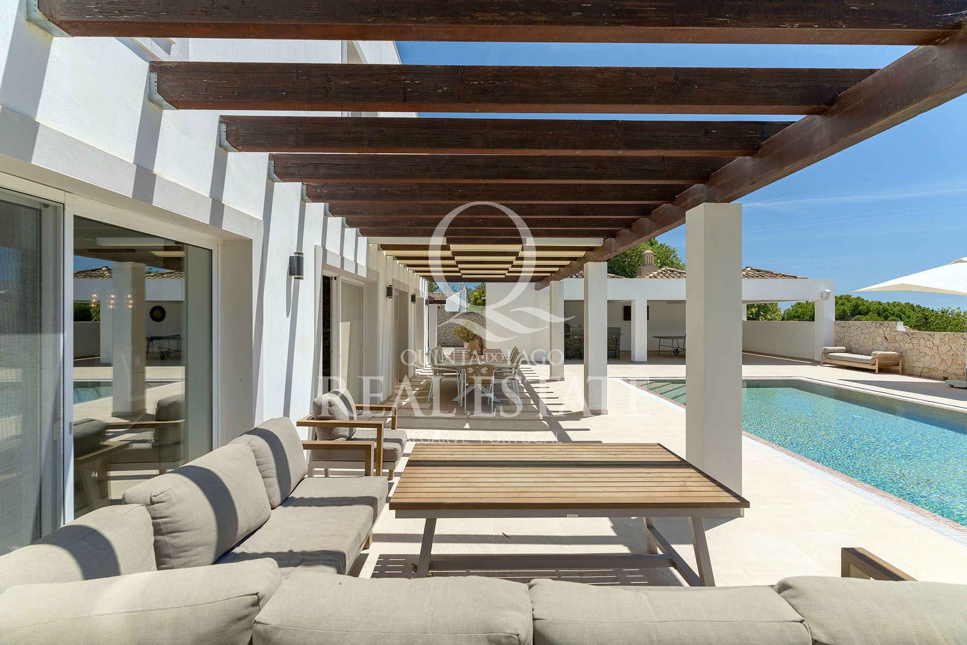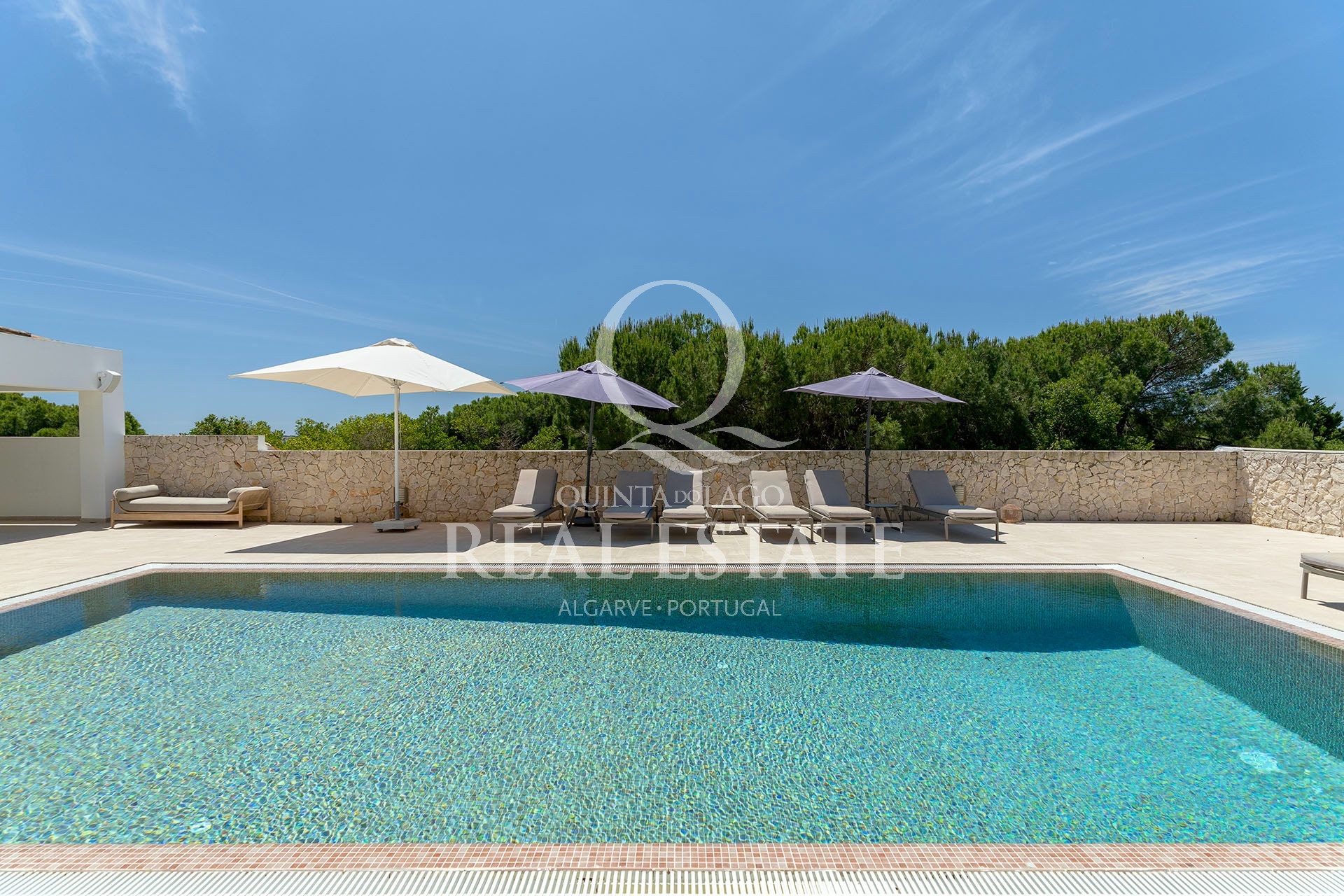 No exterior, encontra o espaço ideal para receber ou desfrutar de refeições informais, com cozinha exterior, zona de BBQ e terraço coberto. A funcionalidade da moradia é reforçada por uma cave, lavandaria, arrumos, aquecimento de pavimento e furo. Apesar do ambiente campestre e sereno, encontra-se a poucos minutos de carro de lojas, cafés, restaurantes, praias deslumbrantes e campos de golfe de excelência. Esta propriedade representa uma oportunidade única para viver o estilo de vida algarvio com total privacidade e elegância.