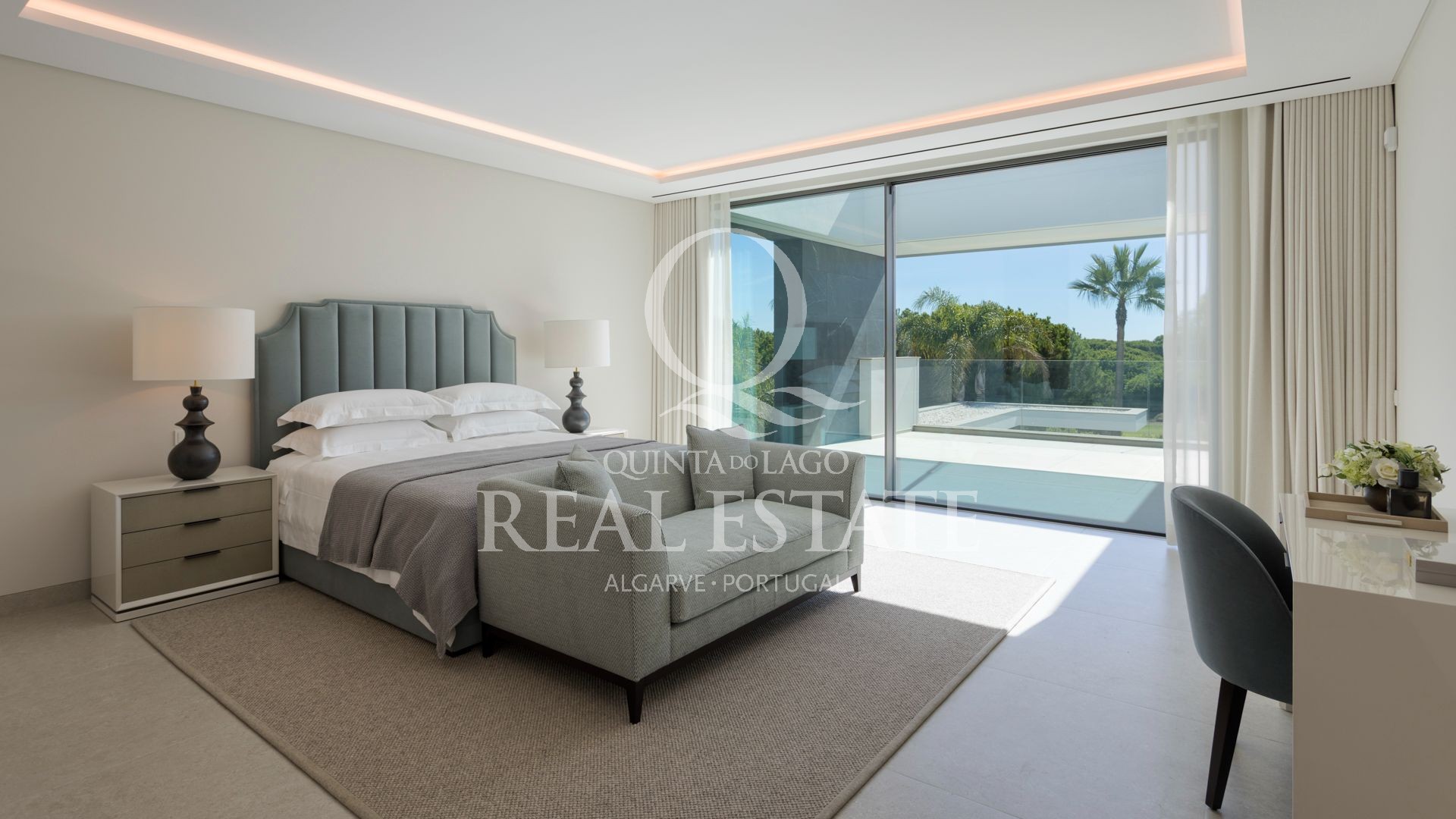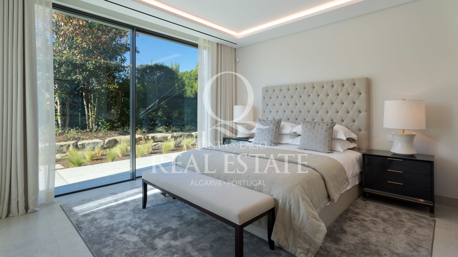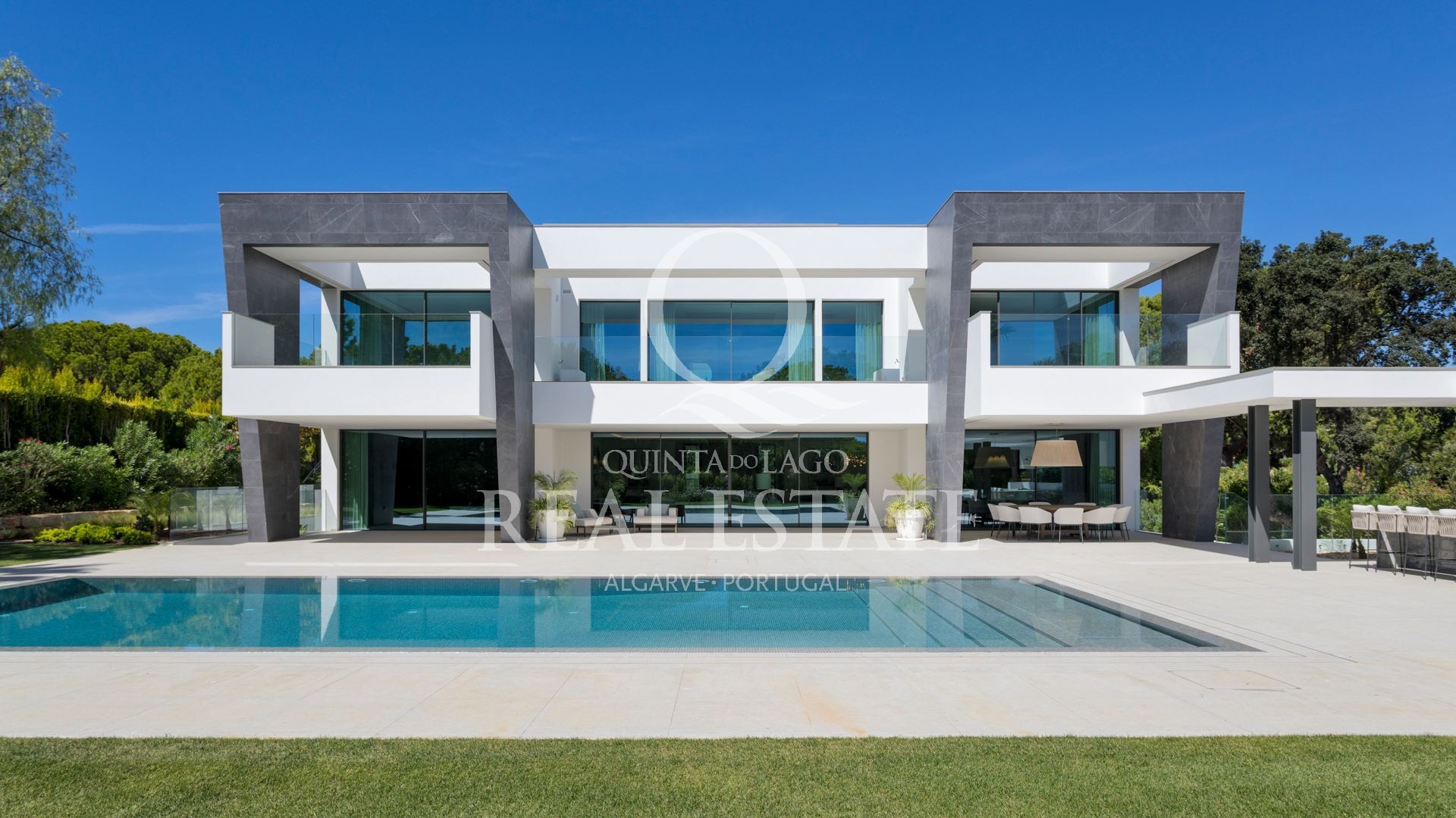 Esta notável moradia combina uma arquitetura contemporânea excecional com 2.100 m² de jardins paisagísticos, numa das localizações mais procuradas da Quinta do Lago. Virada a sudeste e com vista privilegiada sobre o prestigiado campo de golfe de São Lourenço, a propriedade oferece uma rara combinação de elegância, conforto e lifestyle.