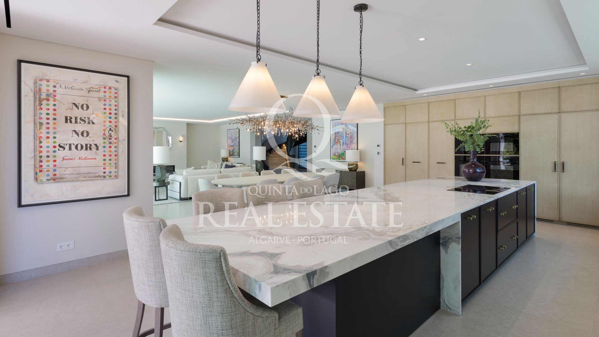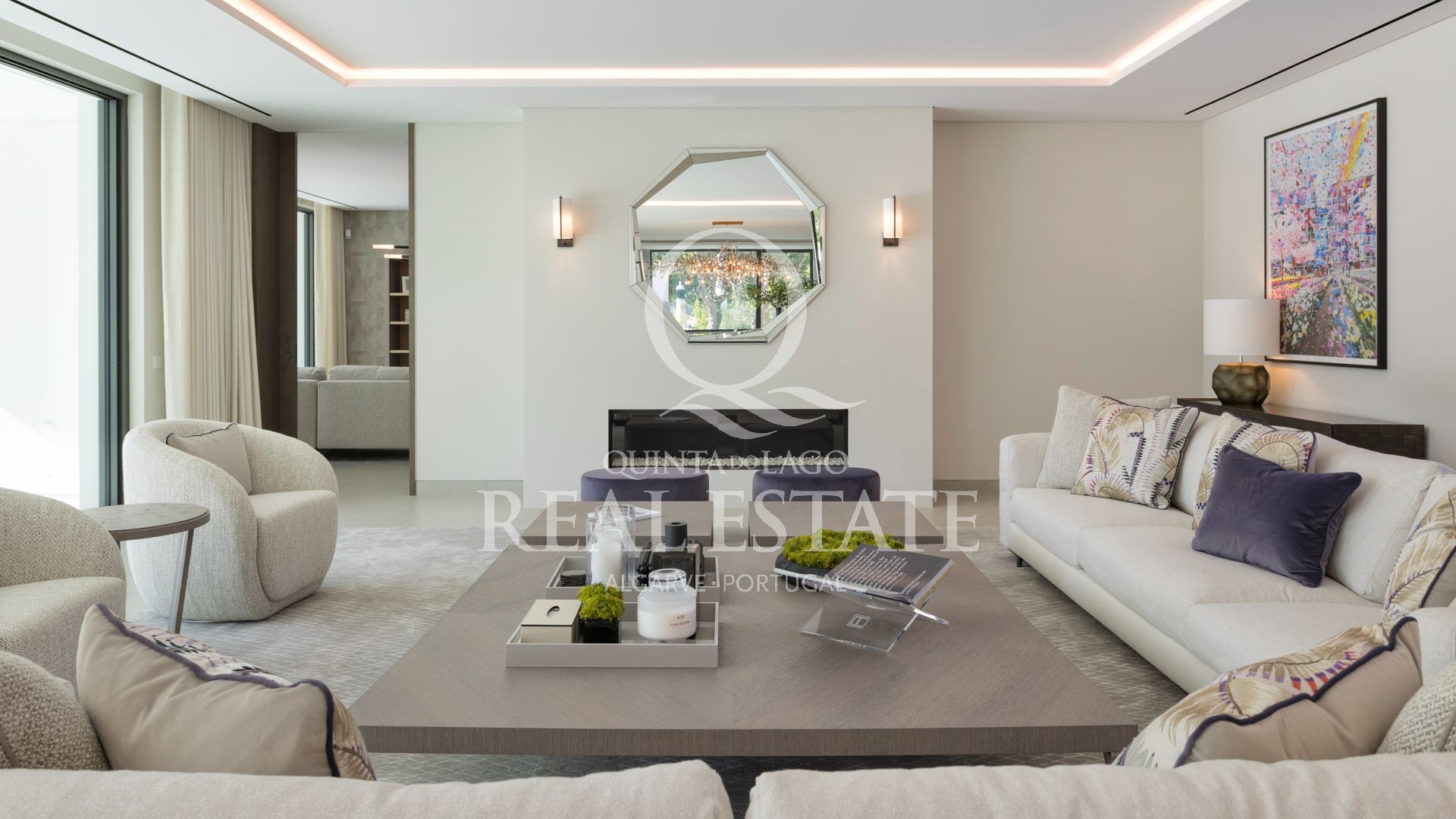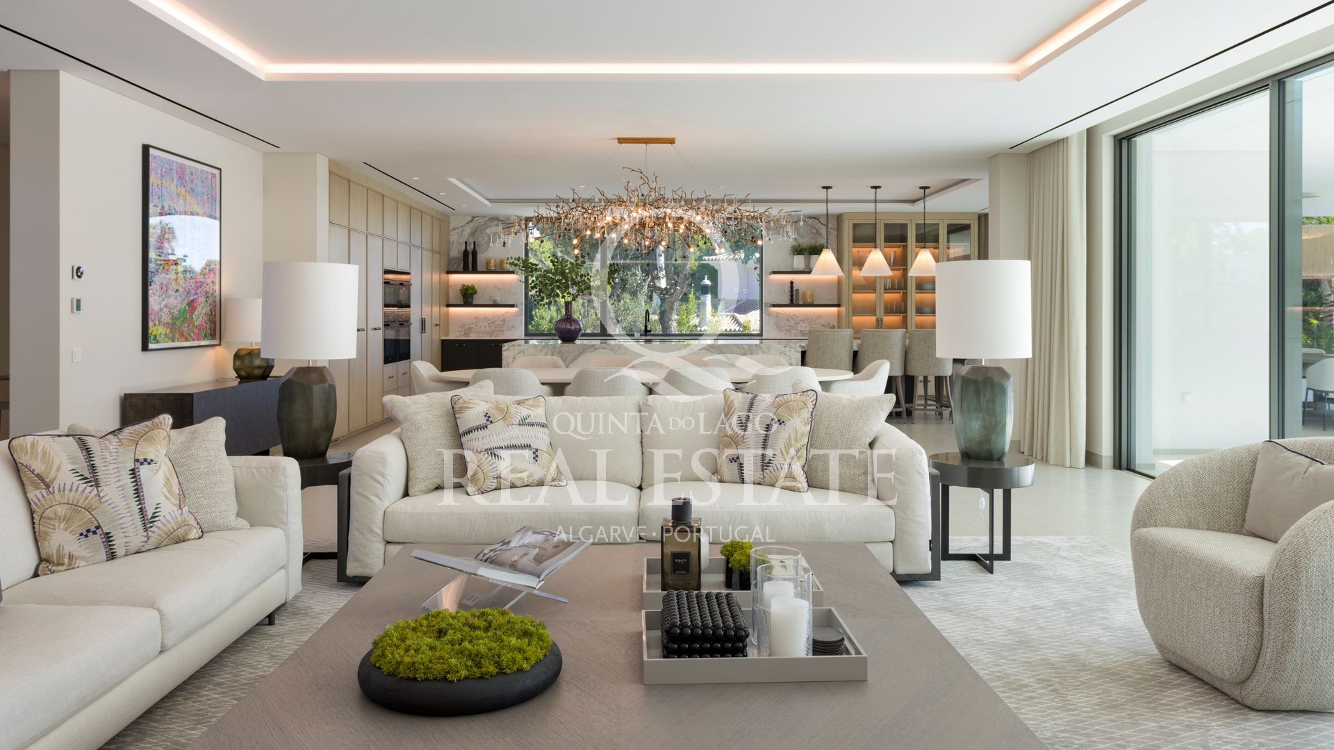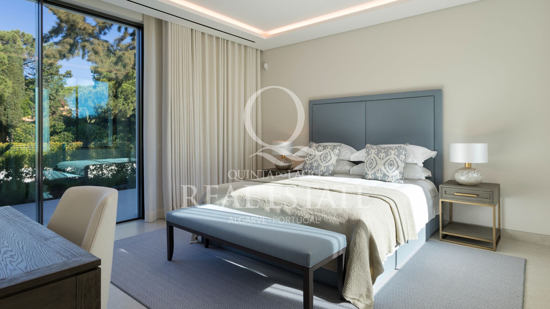 Esta notável moradia combina uma arquitetura contemporânea excecional com 2.100 m² de jardins paisagísticos, numa das localizações mais procuradas da Quinta do Lago. Virada a sudeste e com vista privilegiada sobre o prestigiado campo de golfe de São Lourenço, a propriedade oferece uma rara combinação de elegância, conforto e lifestyle.