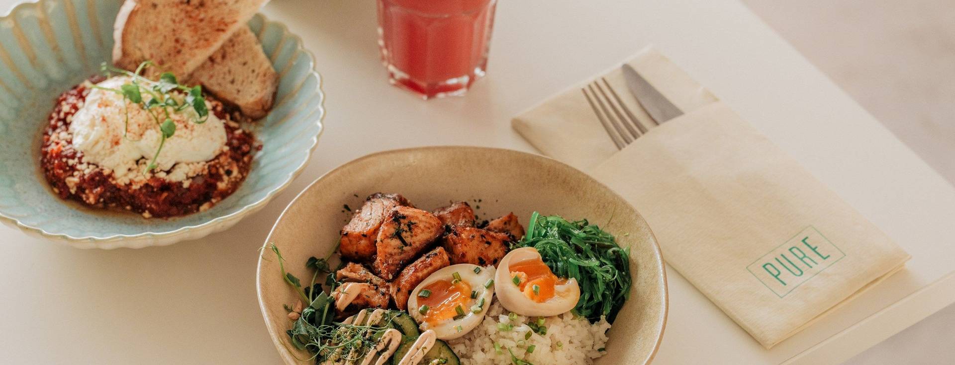 O PURE é a casa dos alimentos saudáveis e coloridos na Quinta do Lago. Entre no café resplandecente onde a abundância de ingredientes frescos e vibrantes disponíveis vão criar a refeição perfeita. Poderá escolher uma das opções nutricionais e equilibradas de pequeno-almoço acompanhado por uma chávena quente de café ou chá de ervas que será servida na sua mesa, no encantador pátio exterior com vista para o buraco 8 do campo Norte.